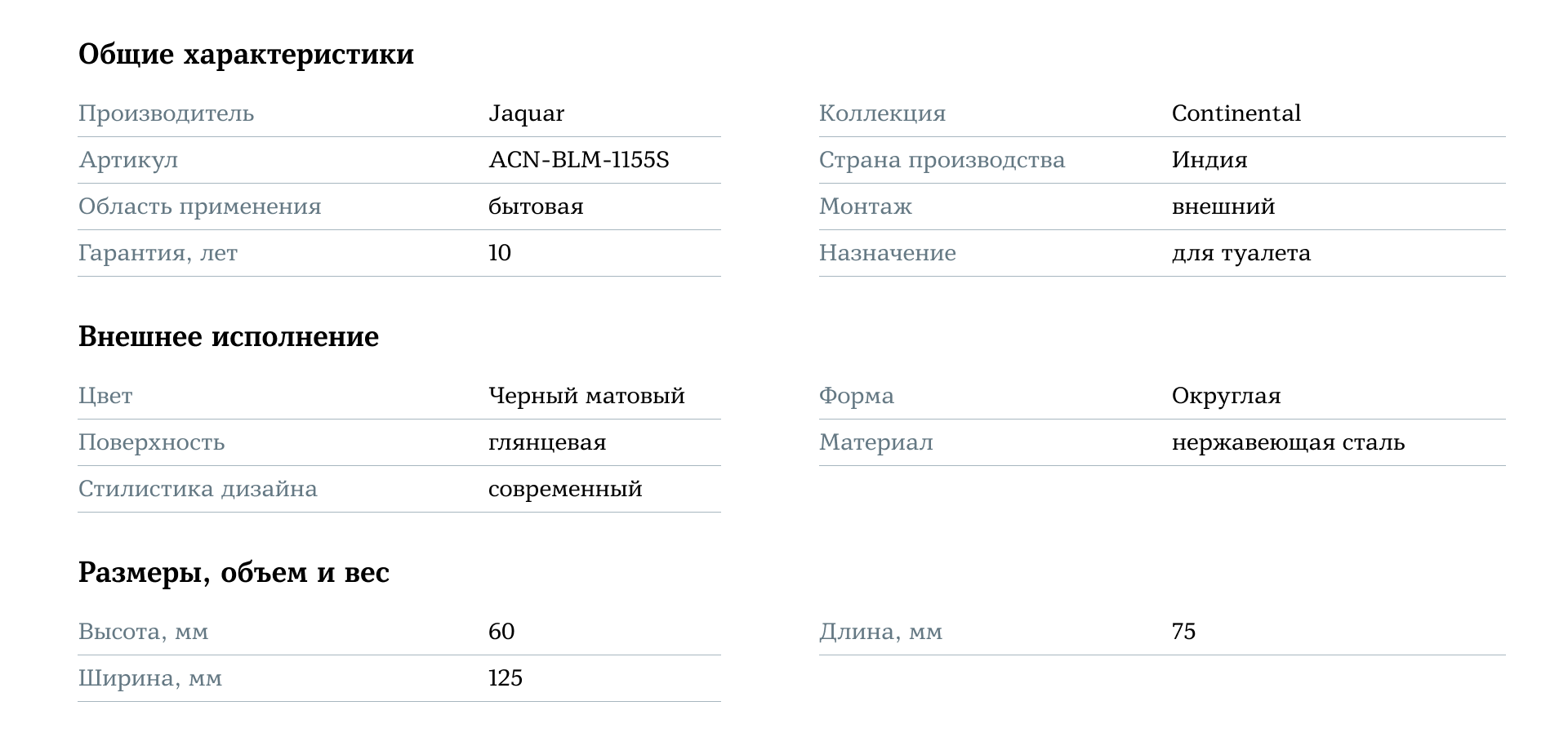 Jaquar Continental ACN-BLM-1155S Черный матовый