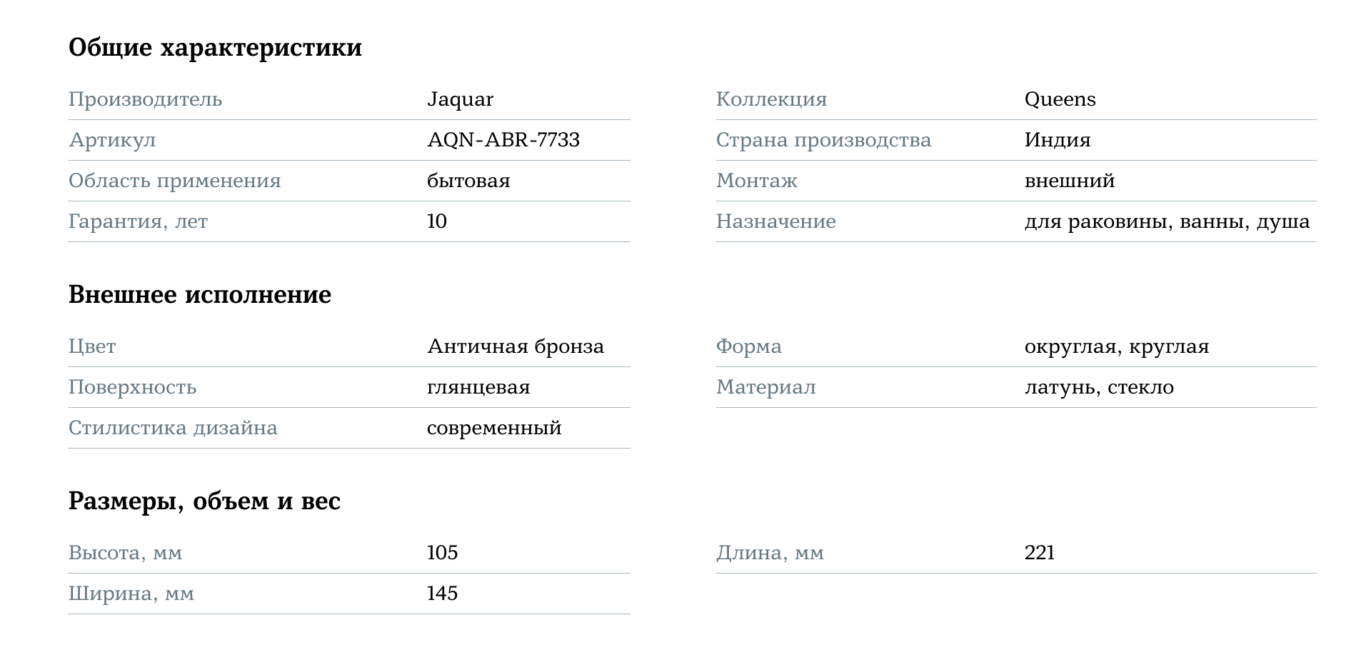 Jaquar Queens AQN-ABR-7733 Античная бронза