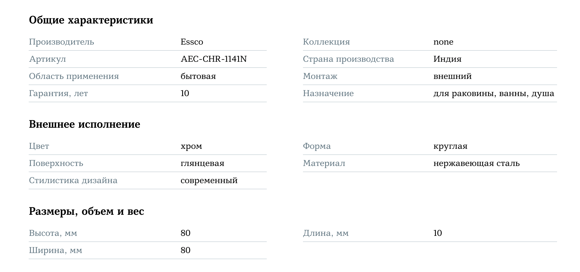 Essco AEC-CHR-1141N Хром