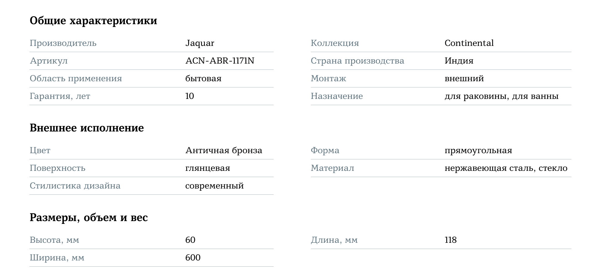 Полка над раковиной Jaquar Continental ACN-ABR-1171N с отделкой античная бронза — это идеальный выбор для тех, кто ценит стиль, долговечность и функциональность в своем санузле.