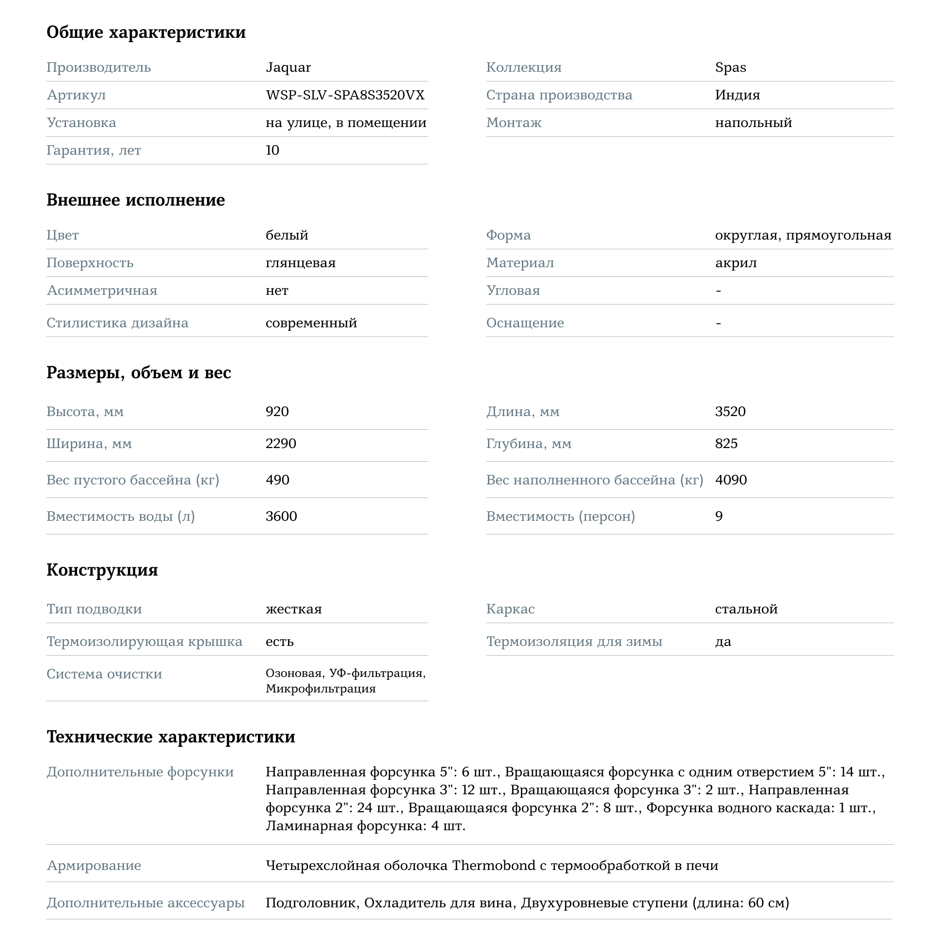 СПА бассейн Palladium WSP-SLV-SPA8S3520VX с размерами 3520x2290x920 мм представляет собой идеальное сочетание стиля, комфорта и функциональности. Рассчитанный на 9 человек, он идеально подходит для использования как на улице, так и в помещении, создавая зону релаксации и гидротерапии для большой компании. Бассейн выполнен с панелями из натурального дерева и термопокрытием, что придает ему элегантный внешний вид.