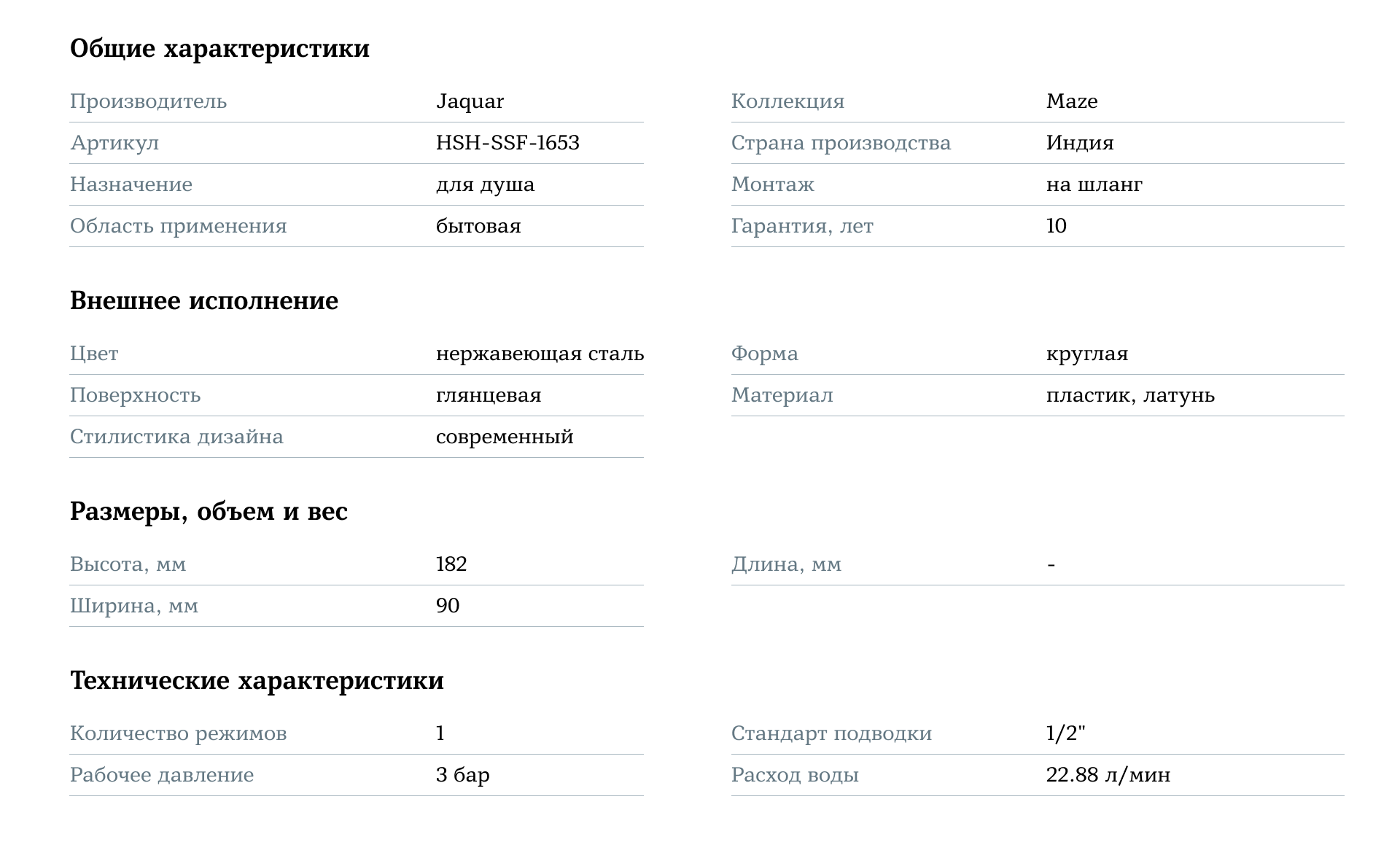 Ручной душ Jaquar Maze HSH-SSF-1653 из нержавеющей стали — это не только функциональный аксессуар, но и стильный акцент в вашей ванной комнате. Вложение в качество, которое будет радовать вас долгие годы.