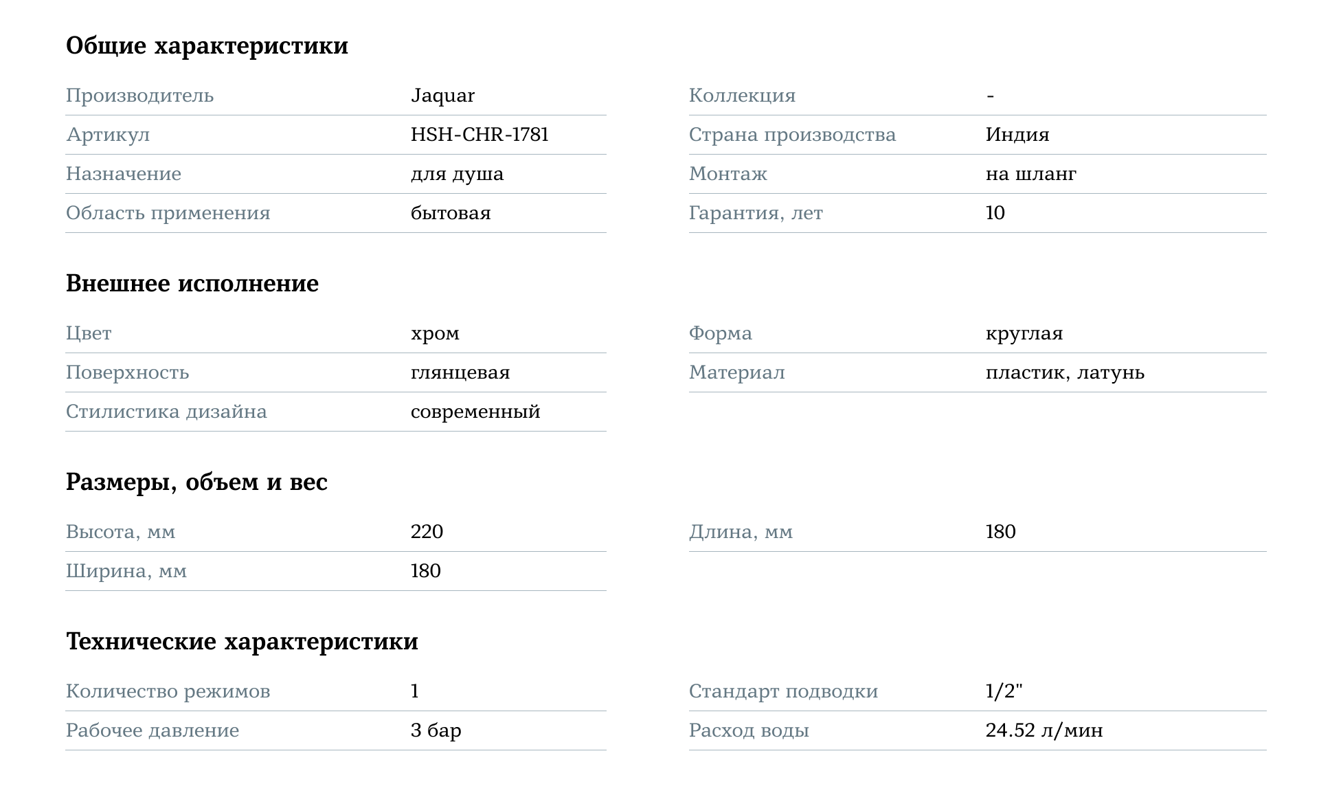 Ручной душ Jaquar HSH-CHR-1781 — это идеальное сочетание высокого качества, современного дизайна и функциональности, которое добавит комфорт и стиль в вашу ванную комнату.