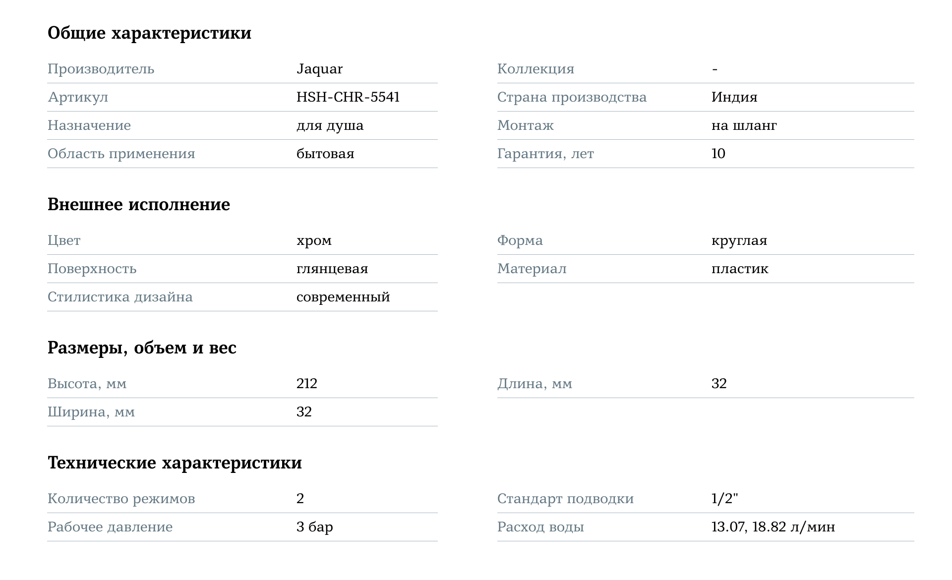 Ручной душ Jaquar HSH-CHR-5541 — это идеальный выбор для тех, кто ищет компактное, функциональное и стильное решение для ванной комнаты.