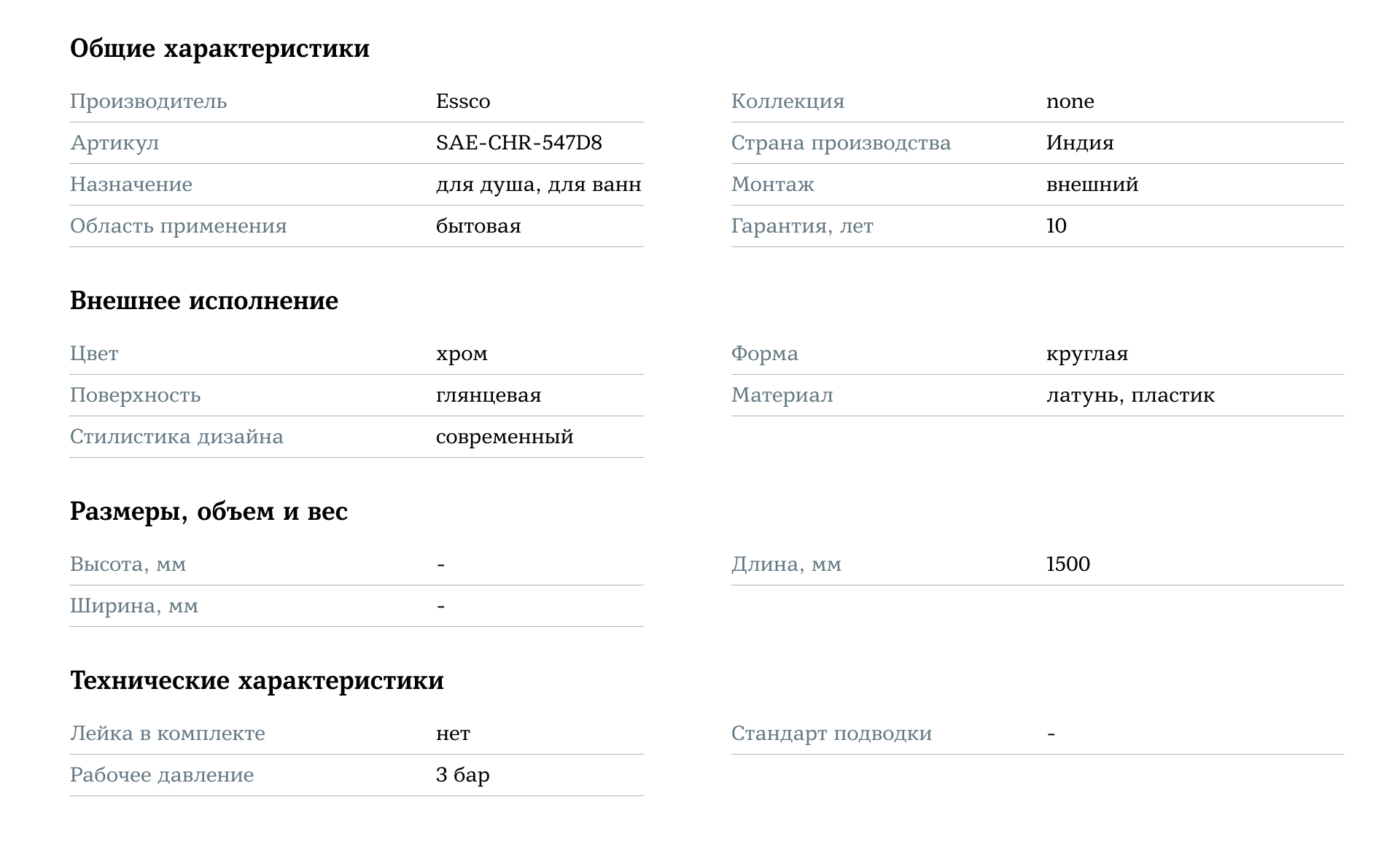 Добавьте комфорт и долговечность в вашу душевую с шлангом для душа Essco SAE-CHR-547D8