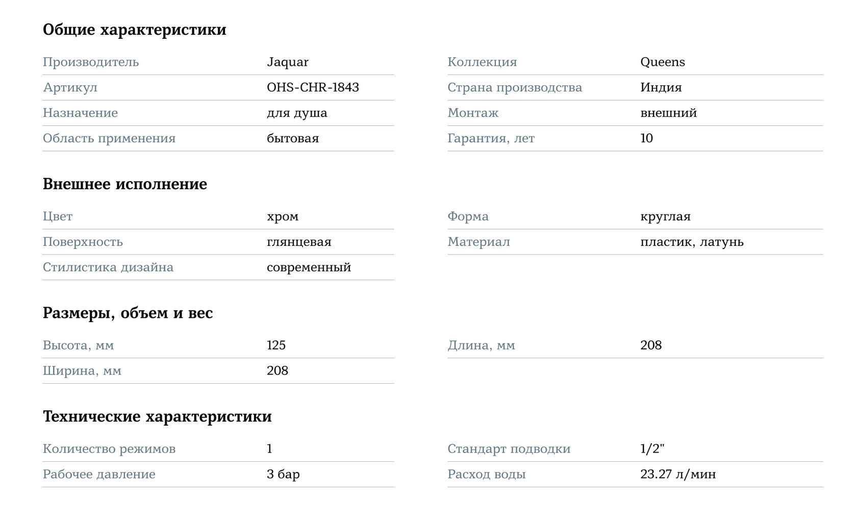 Лейка верхнего душа Jaquar Queens OHS-CHR-1843 — это отличное сочетание красоты, качества и функциональности. Её элегантный викторианский стиль, прочная латунная основа и хромированное покрытие делают её идеальным выбором для тех, кто ценит утонченность и комфорт в своей ванной комнате.