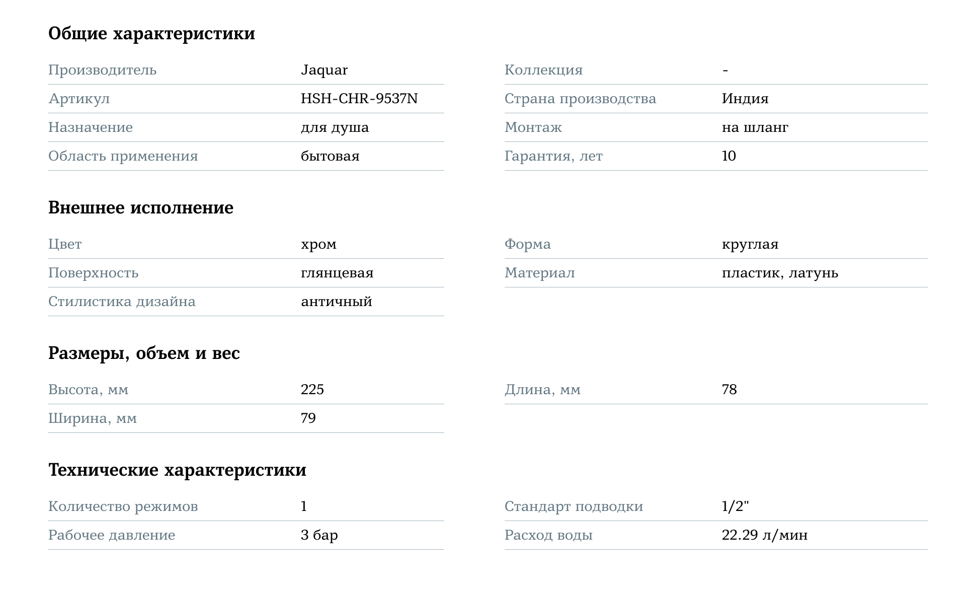 Ручной душ Jaquar HSH-CHR-9537N — это сочетание классического дизайна, современного функционала и высокого качества, которое обеспечит комфорт и стиль в вашей ванной комнате.