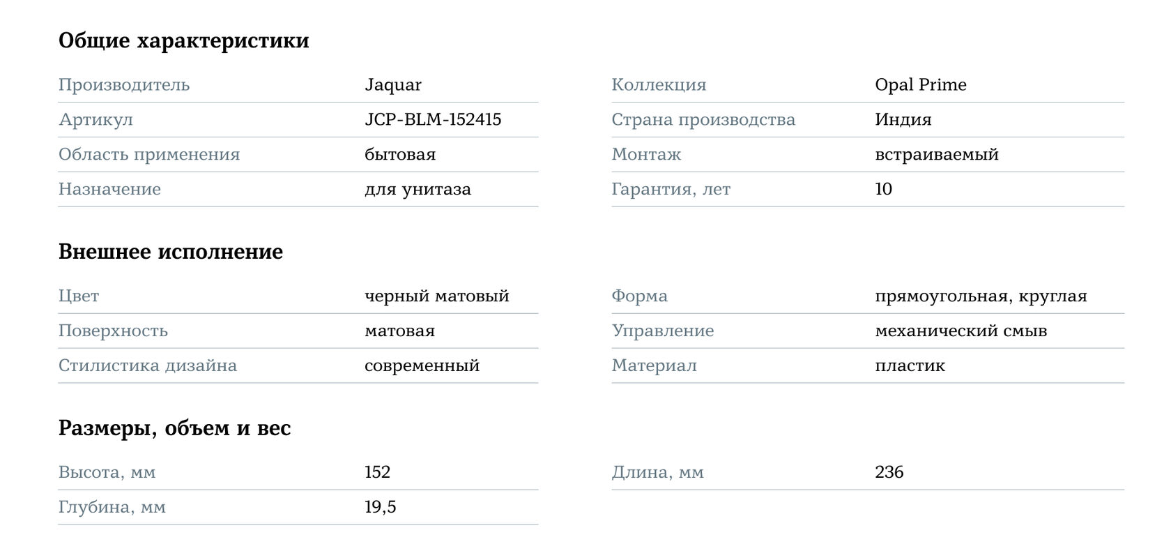 Клавиша смыва Jaquar Opal Prime JCP-BLM-152415 — это сочетание качества, утончённого стиля и функциональности, которое обеспечит комфортное использование и станет выразительным элементом вашей ванной комнаты.