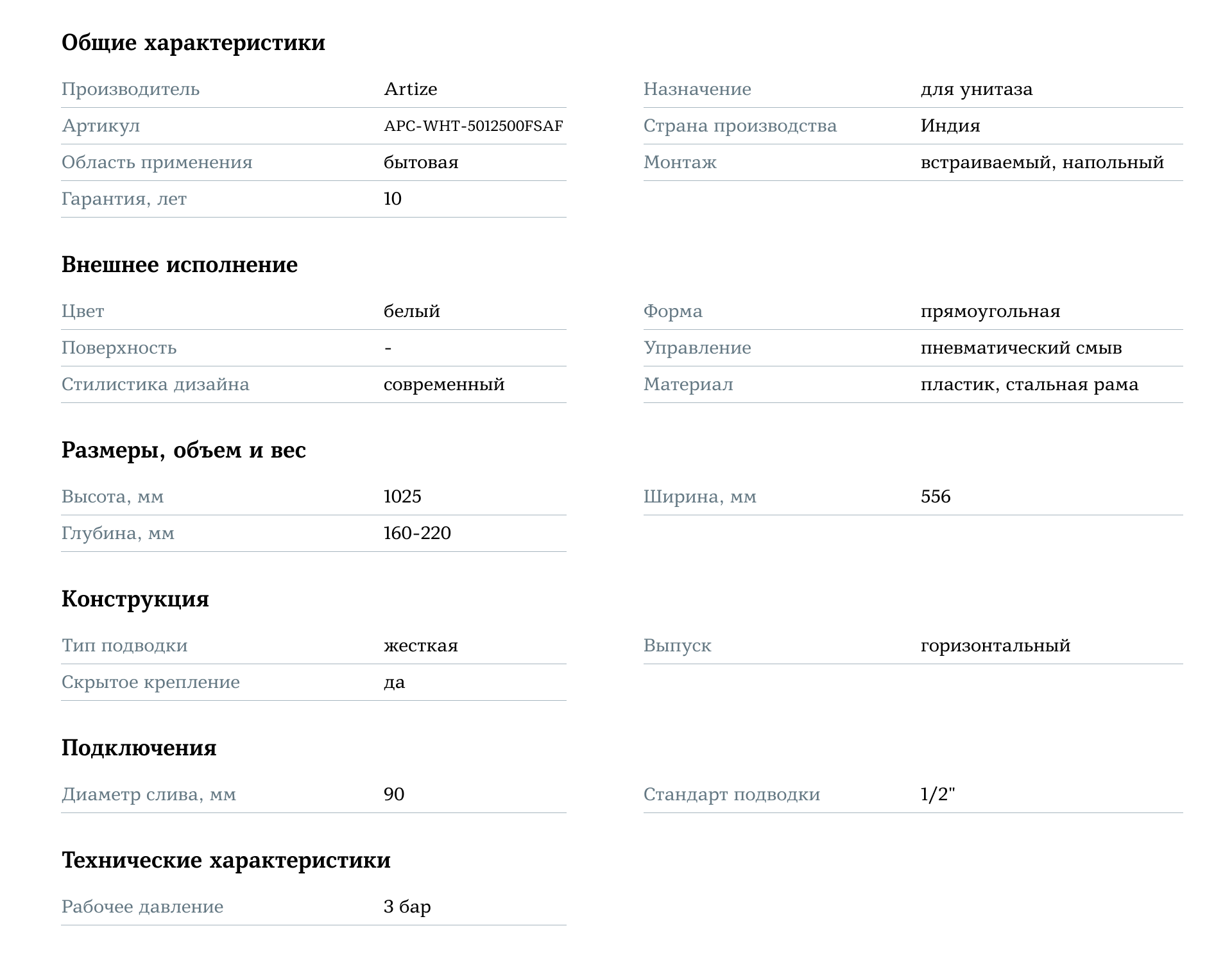 Инсталляция для подвесного унитаза Artize APC-WHT-5012500FSAF — это сочетание инновационных технологий, удобства и современного стиля, которое обеспечит комфортное использование и станет стильным дополнением вашей ванной комнаты.