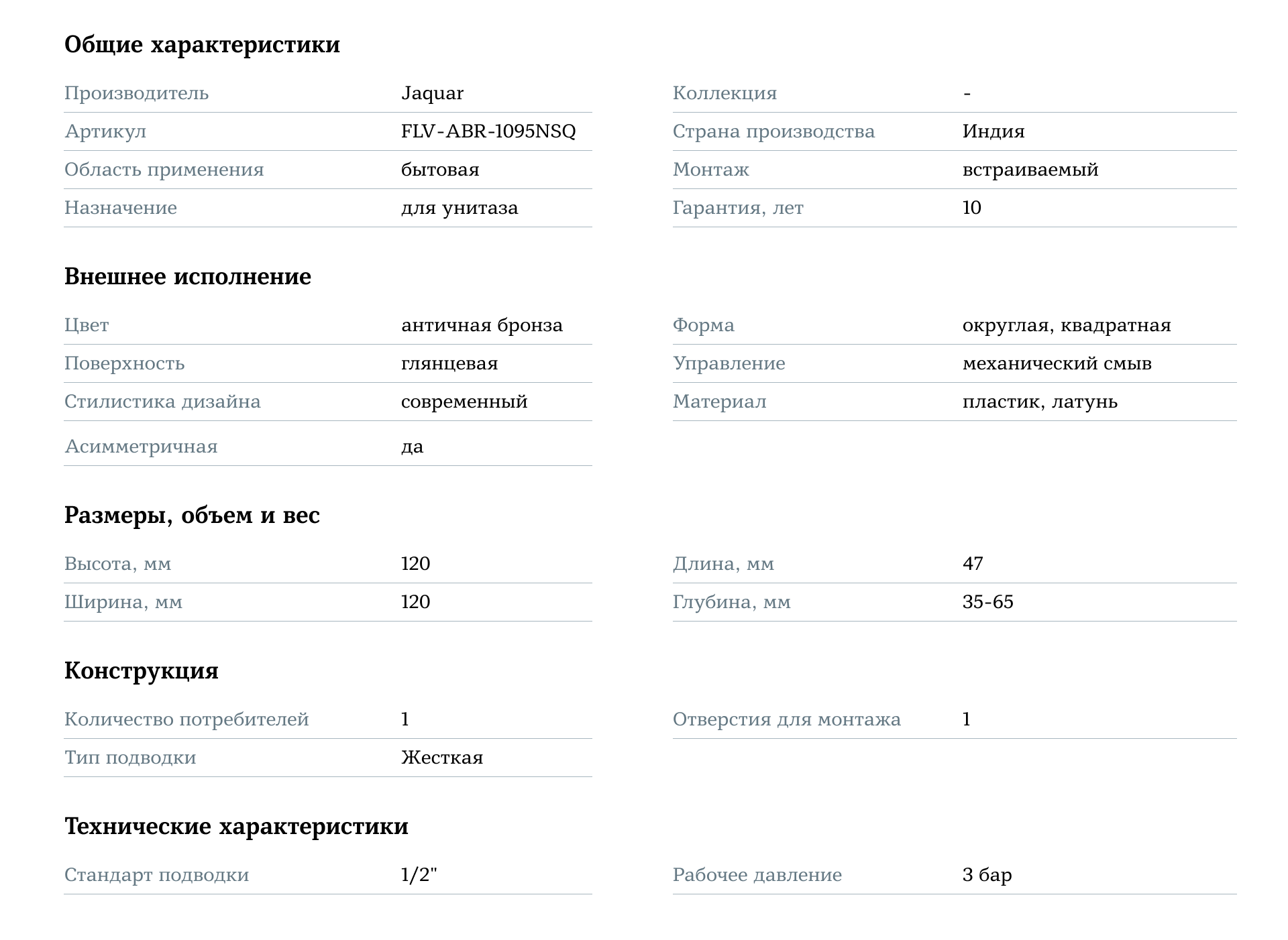 Нажимной кран Jaquar FLV-ABR-1095NSQ — это сочетание качества, функциональности и утончённого стиля, которое обеспечит комфортное использование и добавит нотки винтажной элегантности в вашу ванную комнату.