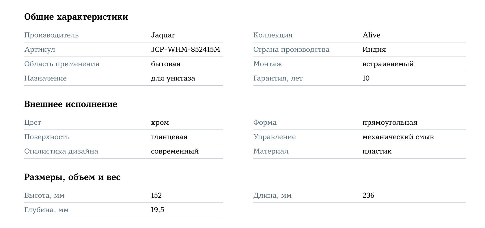 Клавиша смыва Jaquar Alive JCP-CHR-852415 — это сочетание качества, функциональности и элегантного стиля, которое обеспечит комфортное использование и станет стильным акцентом в вашей ванной комнате.
