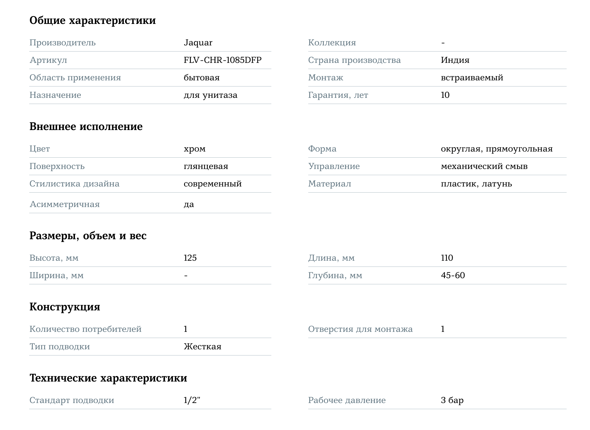 Jaquar FLV-CHR-1085DFP Хром