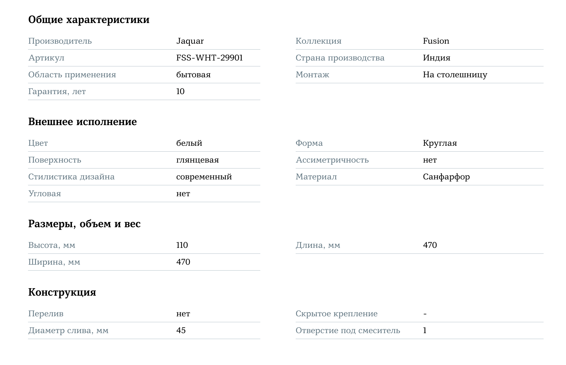 Раковина на столешницу Jaquar Fusion FSS-WHT-29901 — это сочетание качества, эстетики и функциональности, которое добавит стильный акцент и обеспечит комфортное использование вашей ванной комнаты.
