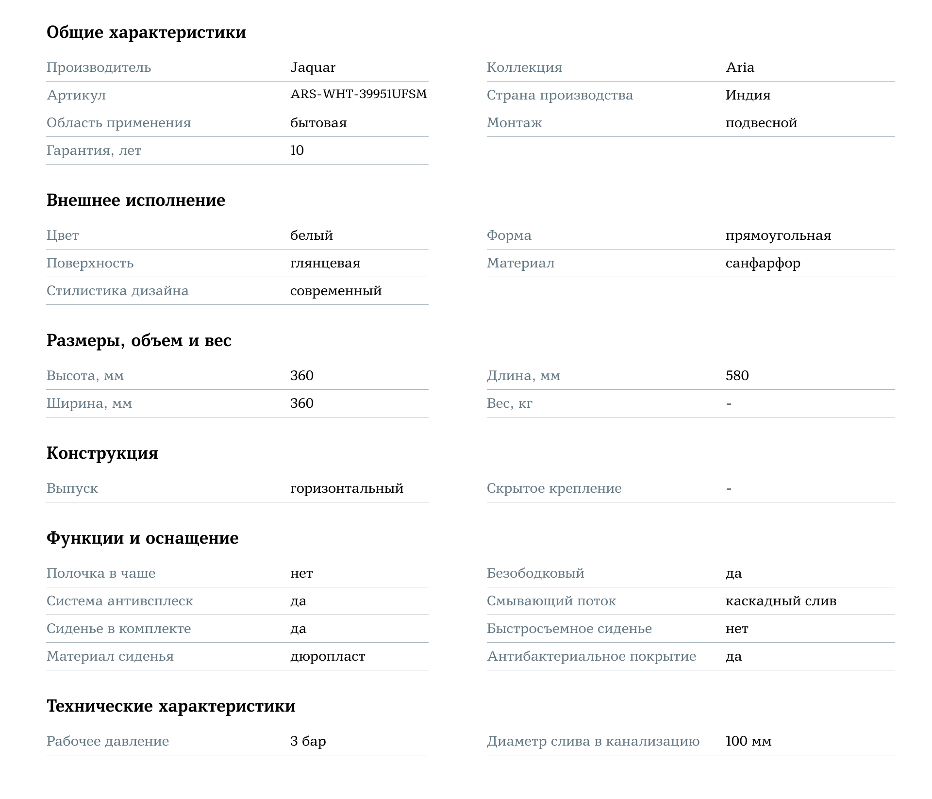 Подвесной унитаз Jaquar Aria ARS-WHT-39951UFSM — это сочетание стиля, качества и функциональности, которое обеспечит комфортное использование и придаст вашей ванной комнате современный и элегантный вид.