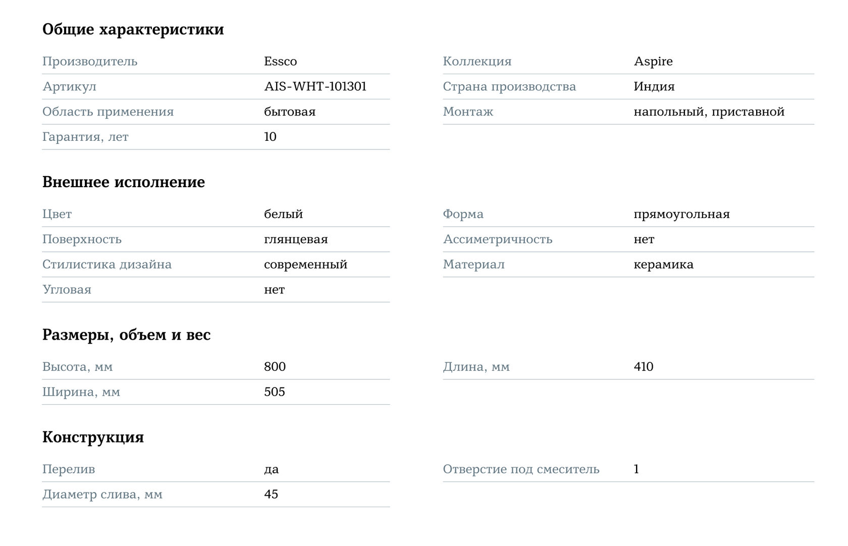 Пьедестал для раковины Essco Aspire AIS-WHT-101301 — это сочетание функциональности, стиля и высокого качества. Этот элемент станет идеальным дополнением к вашей ванной комнате, обеспечивая эстетичный и аккуратный вид.