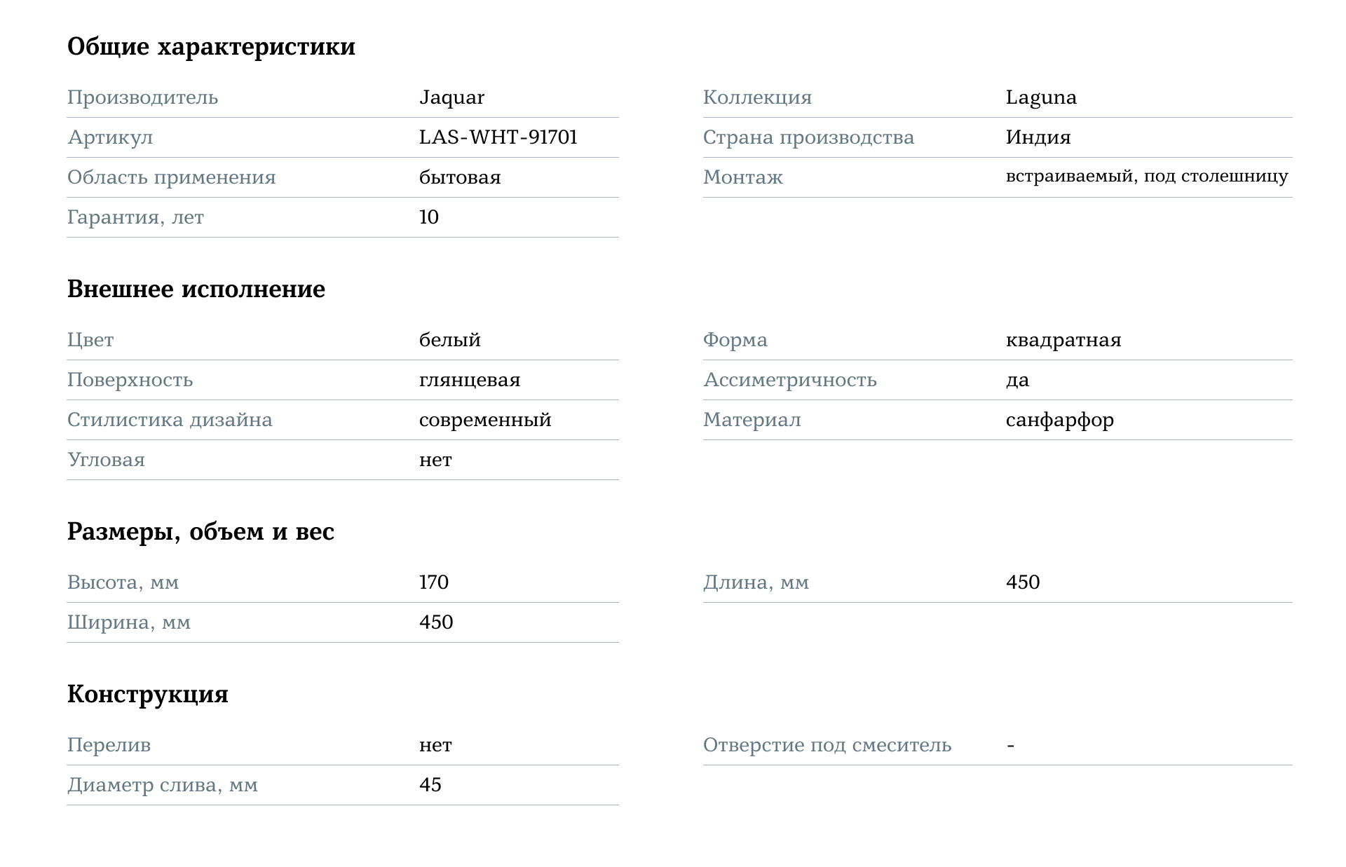 Раковина под столешницу Jaquar Laguna LAS-WHT-91701 — это сочетание элегантности и практичности, которое добавит вашей ванной комнате утончённости и удобства, создавая комфортное и стильное пространство для повседневного использования.