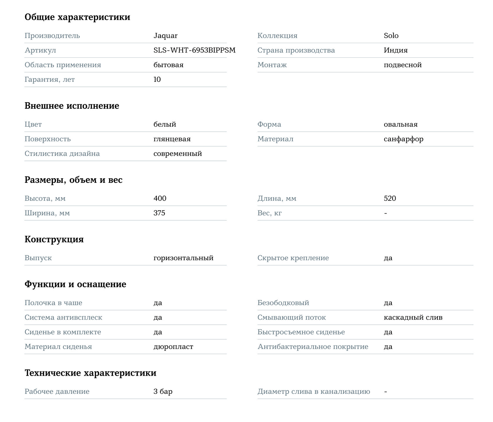 Компактные размеры (350x530x400 мм) — подходят для различных размеров санузлов, включая небольшие.
