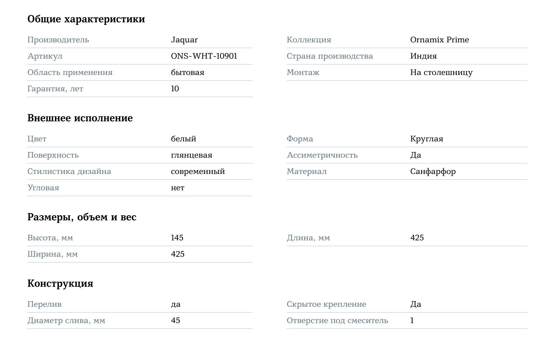 Раковина на столешницу Jaquar Ornamix Prime ONS-WHT-10901 — это сочетание высокого качества, функциональности и современного стиля, которое станет стильным дополнением вашей ванной комнаты, создавая атмосферу комфорта и эстетики.