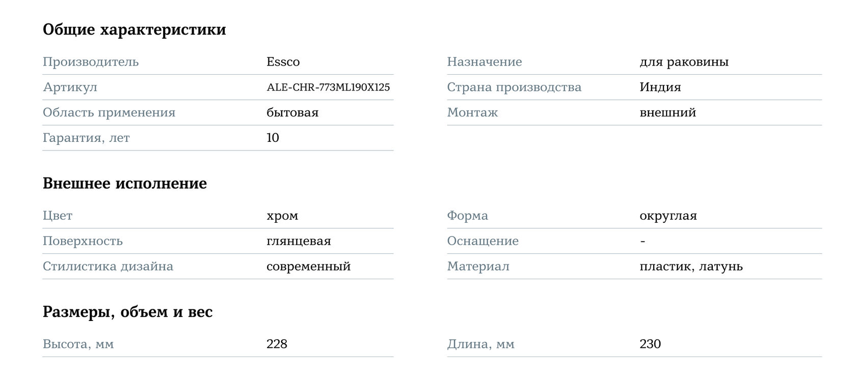 Essco ALE-CHR-773ML190X125 Хром