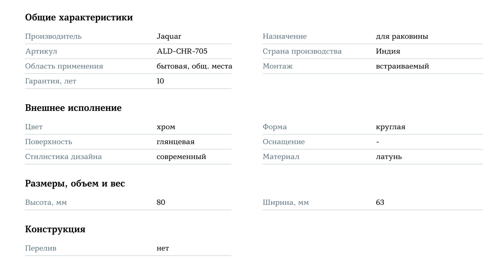 Конструкция: совместима с раковинами без перелива