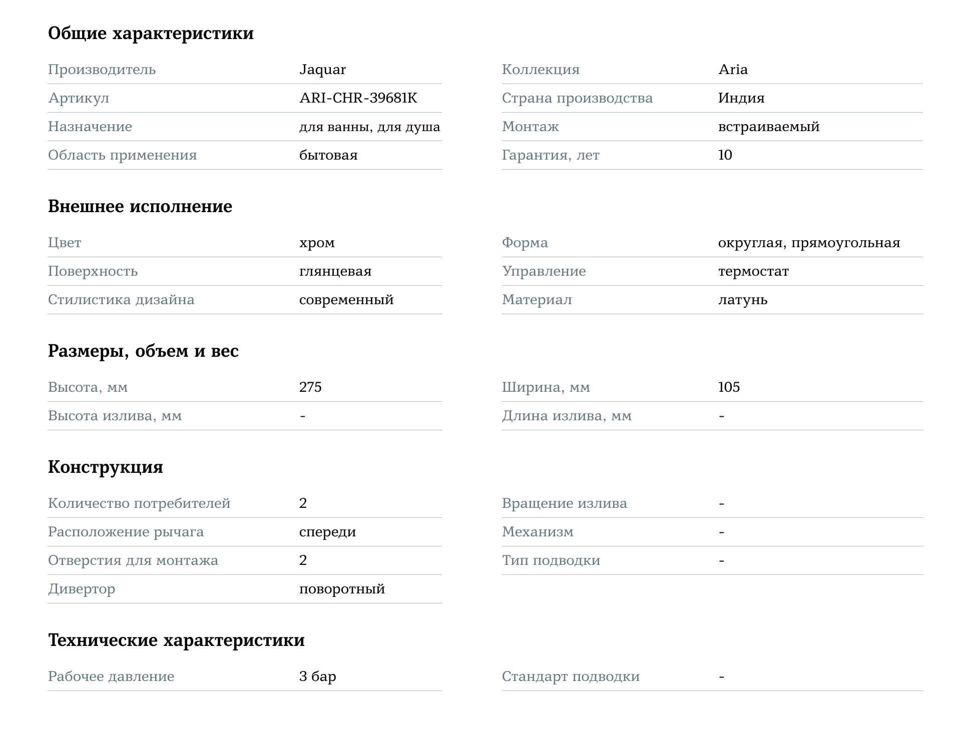 Jaquar Aria ARI-CHR-39681K Хром