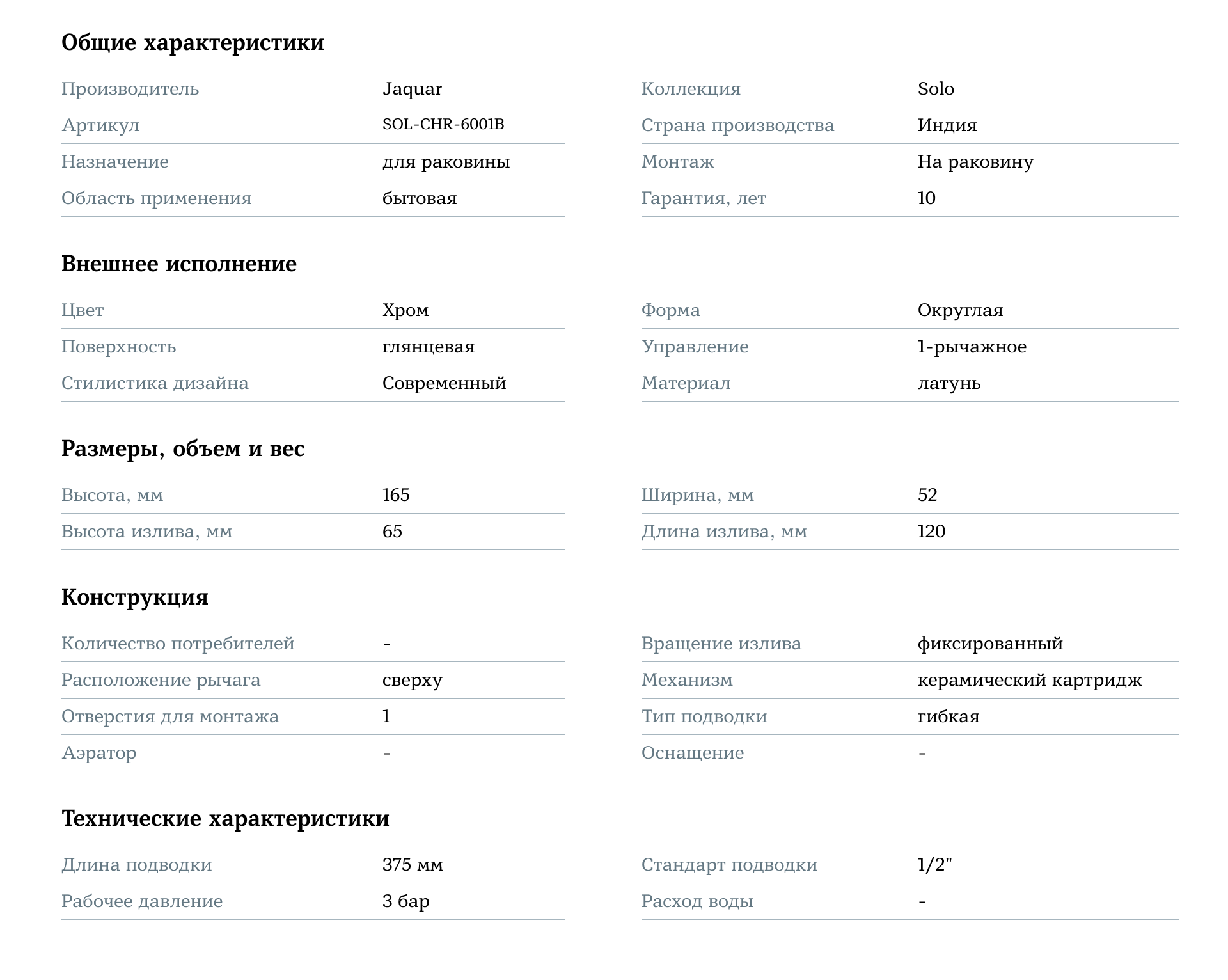 Jaquar Solo SOL-CHR-6001B Хром