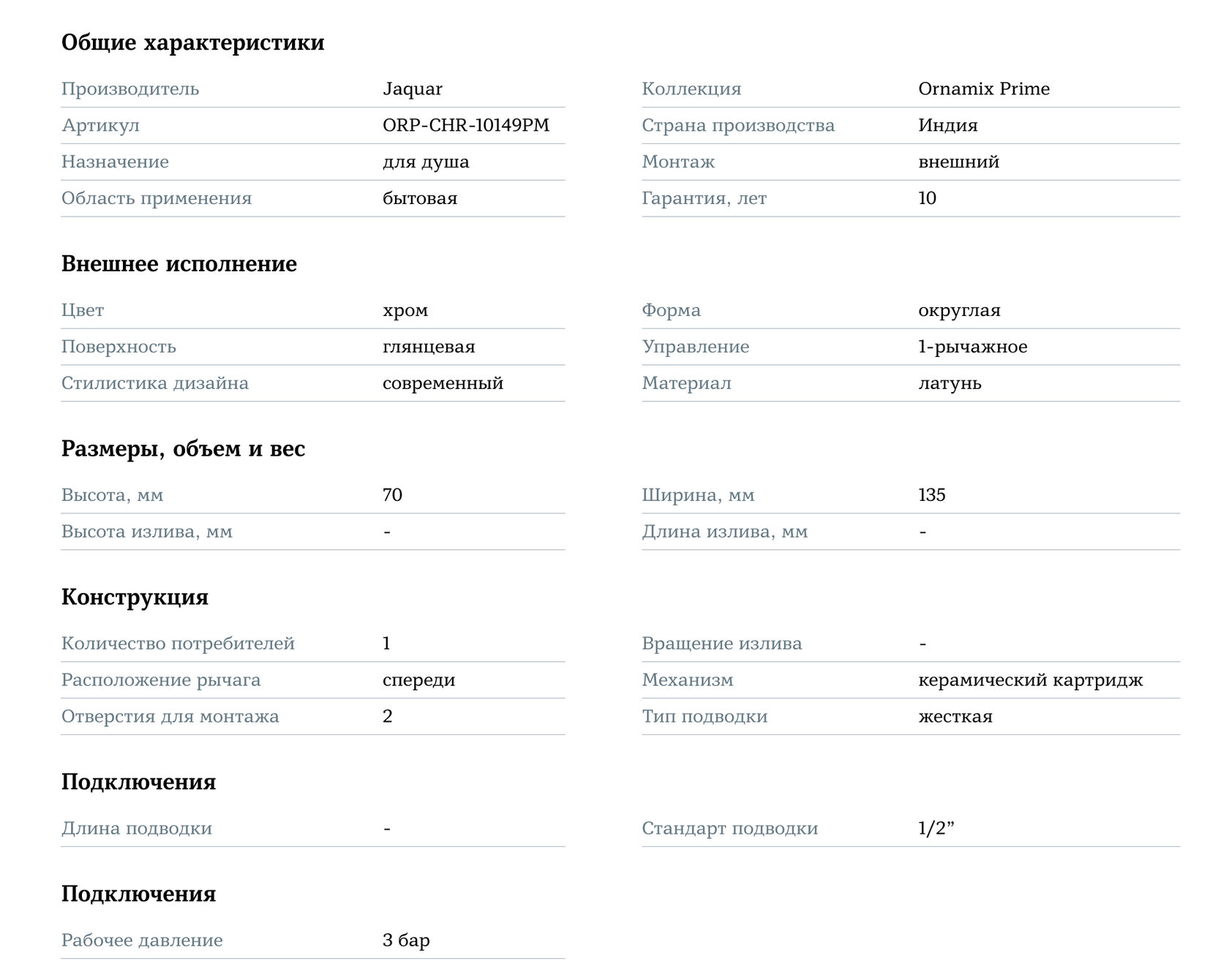 Jaquar Ornamix Prime ORP-CHR-10149PM — это сочетание высокого качества, функциональности и современного дизайна, которое станет идеальным выбором для вашей ванной комнаты, создавая атмосферу комфорта и стиля.