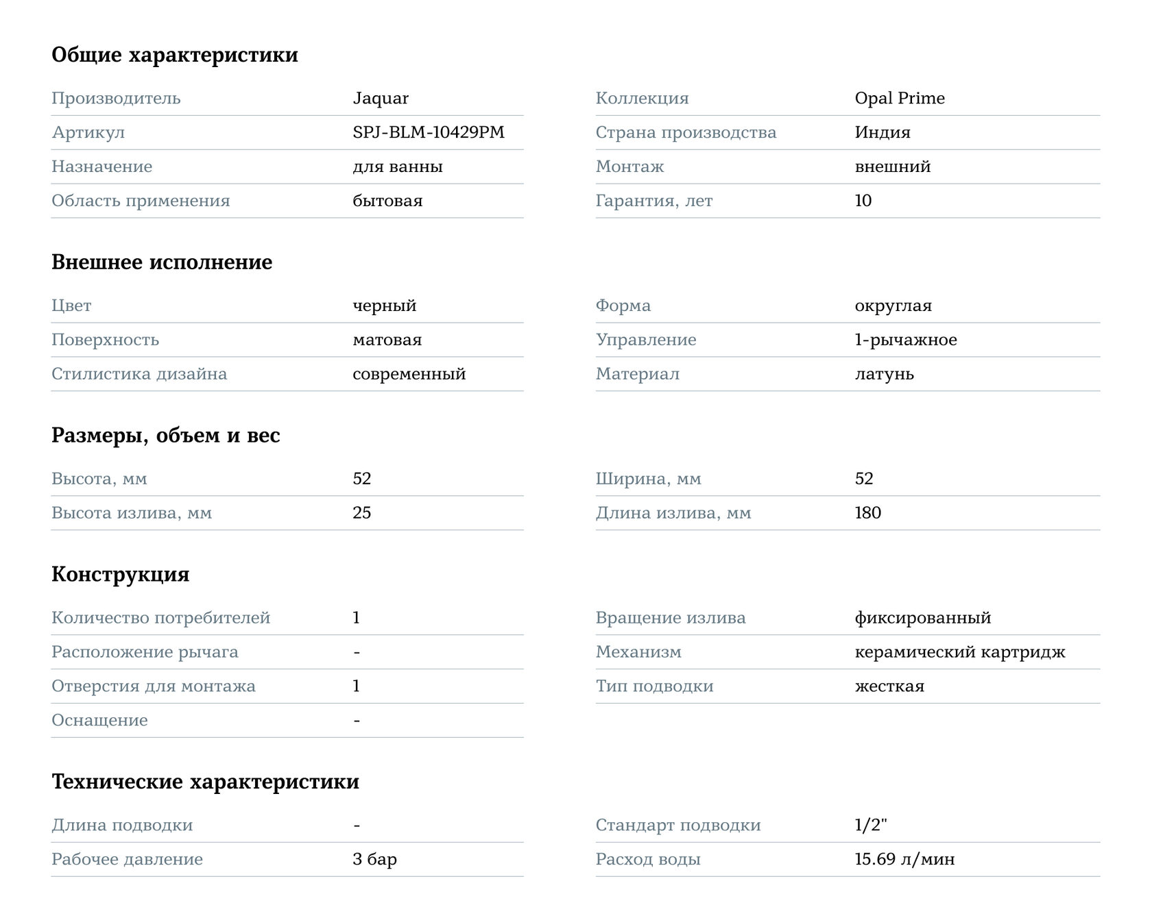 Jaquar Opal Prime SPJ-BLM-10429PM Черный матовый