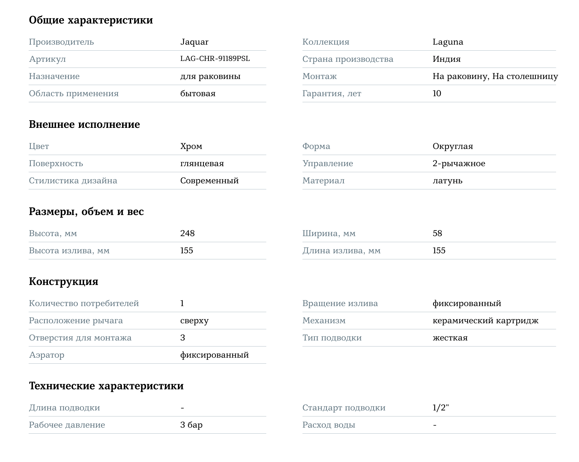 Добавьте стиль и удобство в вашу ванную комнату с смесителем для раковины Jaquar Laguna LAG-CHR-91189PSL, создавая элегантное и функциональное пространство!