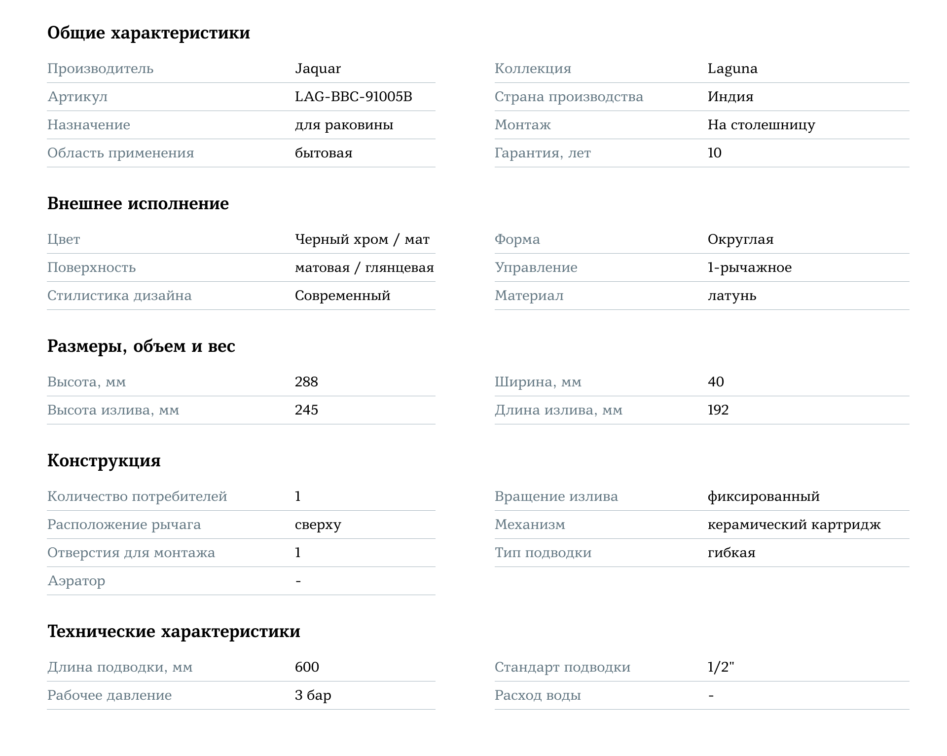 Добавьте стиль и функциональность в вашу ванную комнату с смесителем Jaquar Laguna LAG-BBC-91005B, создавая современное и элегантное пространство!