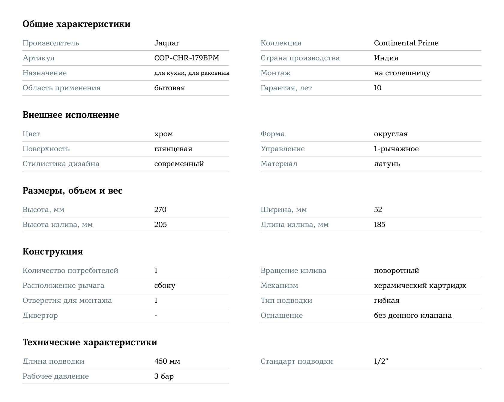 Добавьте стиль и удобство в вашу кухню с смесителем Jaquar Continental Prime COP-CHR-179BPM, создавая современное и функциональное пространство!