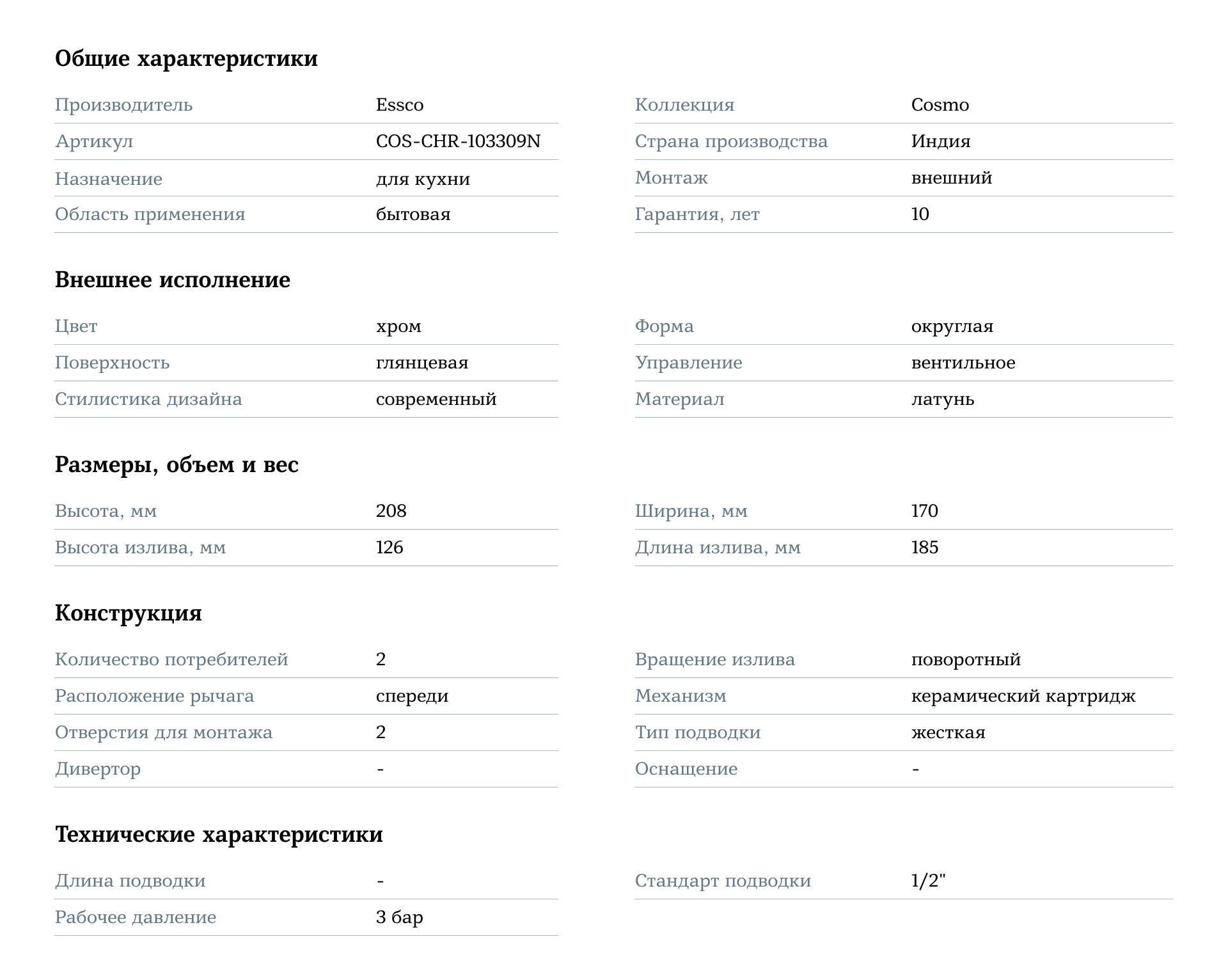 Приобретите смеситель для раковины в кухню Essco Cosmo COS-CHR-103309N уже сегодня и добавьте стиль, удобство и функциональность в вашу кухню!