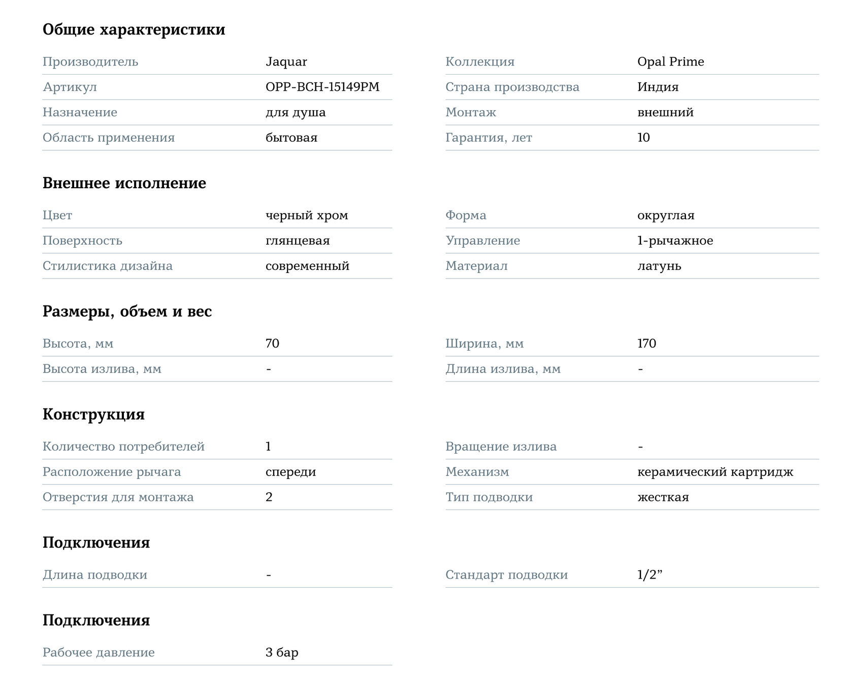 Смеситель для душа Jaquar Opal Prime OPP-BCH-15149PM — это сочетание высокого качества, функциональности и современного стиля, которое сделает ваше душевое пространство удобным и стильным для ежедневного использования.