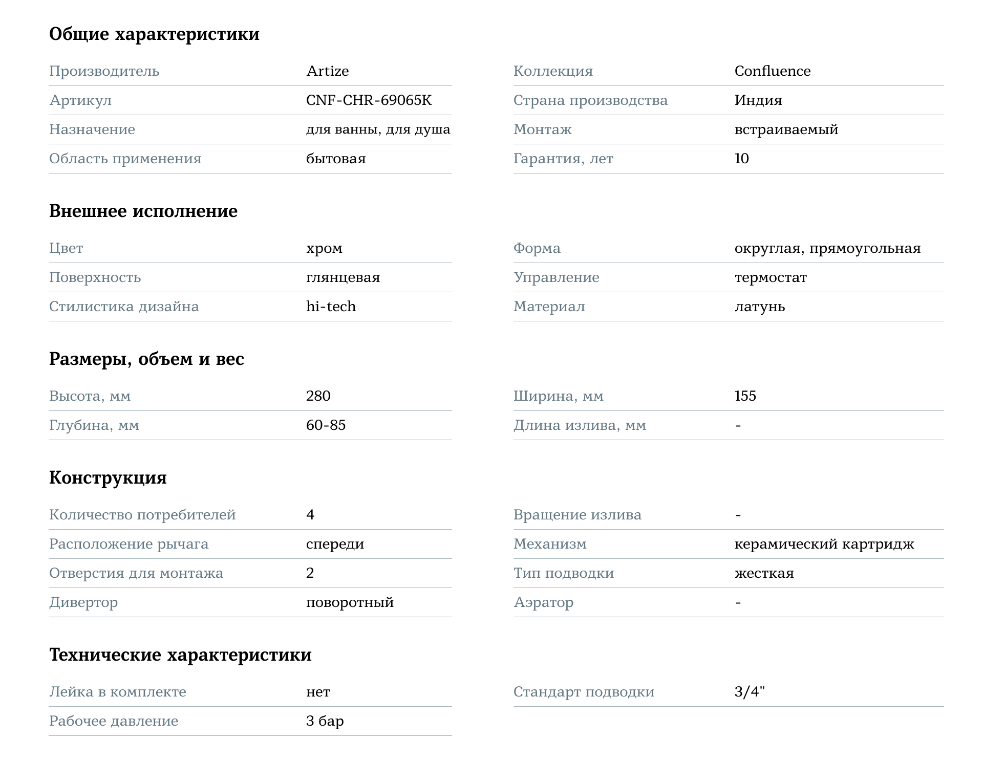 Совместимость с смесителем CNF-69065C: Набор идеально подходит для использования с основным смесителем Artize Confluence CNF-69065C, обеспечивая гармоничную работу всех компонентов.
