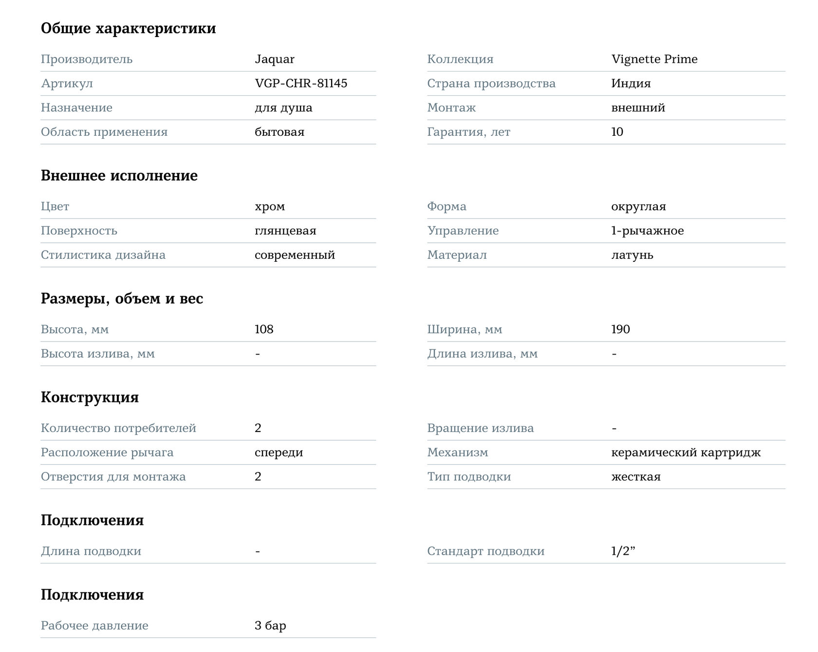 Jaquar Vignette Prime VGP-CHR-81145 — это сочетание высокого качества, удобства и современного дизайна, которое сделает использование душа максимально комфортным и стильным, создавая уютную атмосферу в вашей ванной комнате.