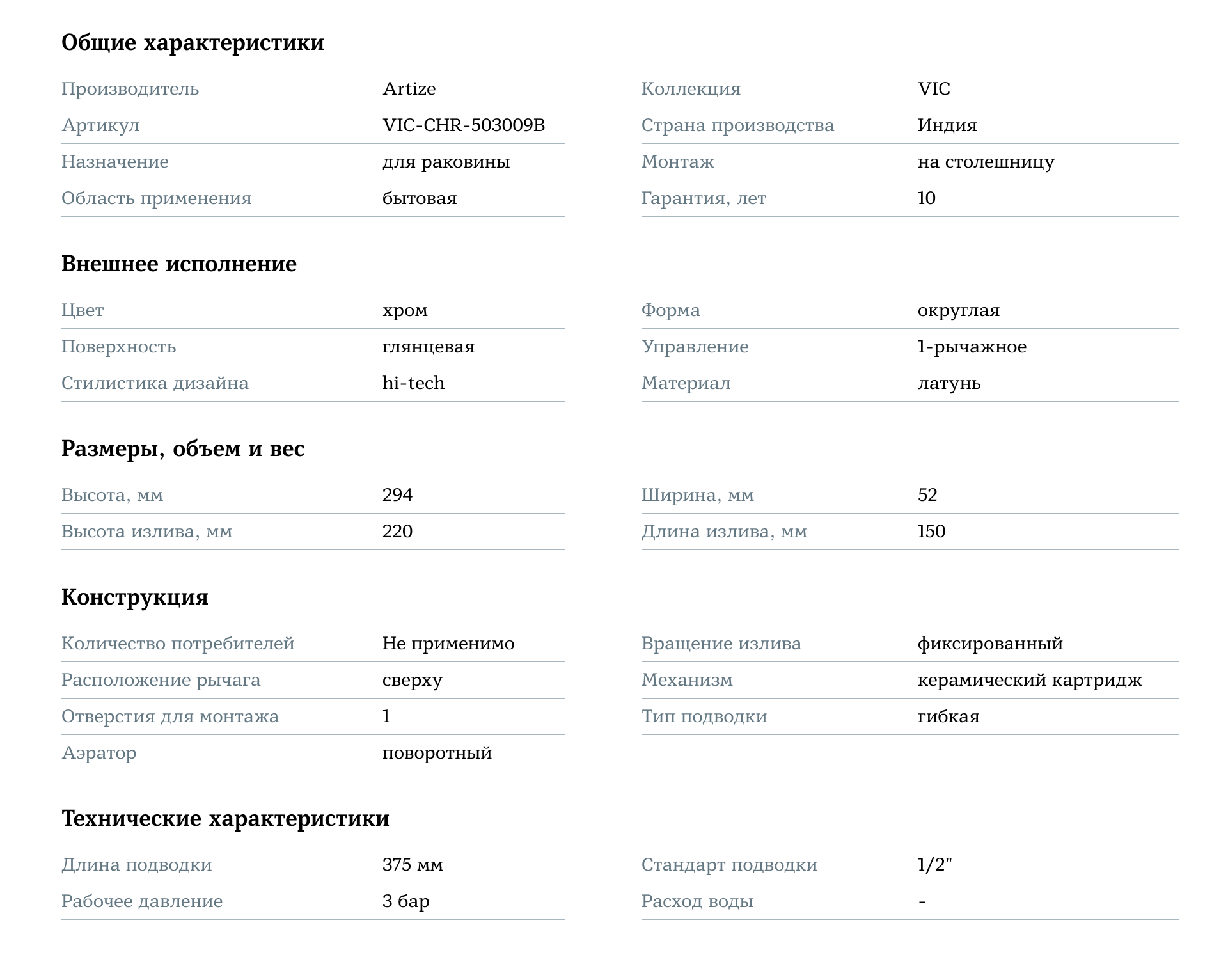 Artize VIC VIC-CHR-503009B Хром – это выбор для тех, кто стремится к высокому качеству, комфорту и эстетике, создавая в своей ванной комнате атмосферу современности и роскоши.