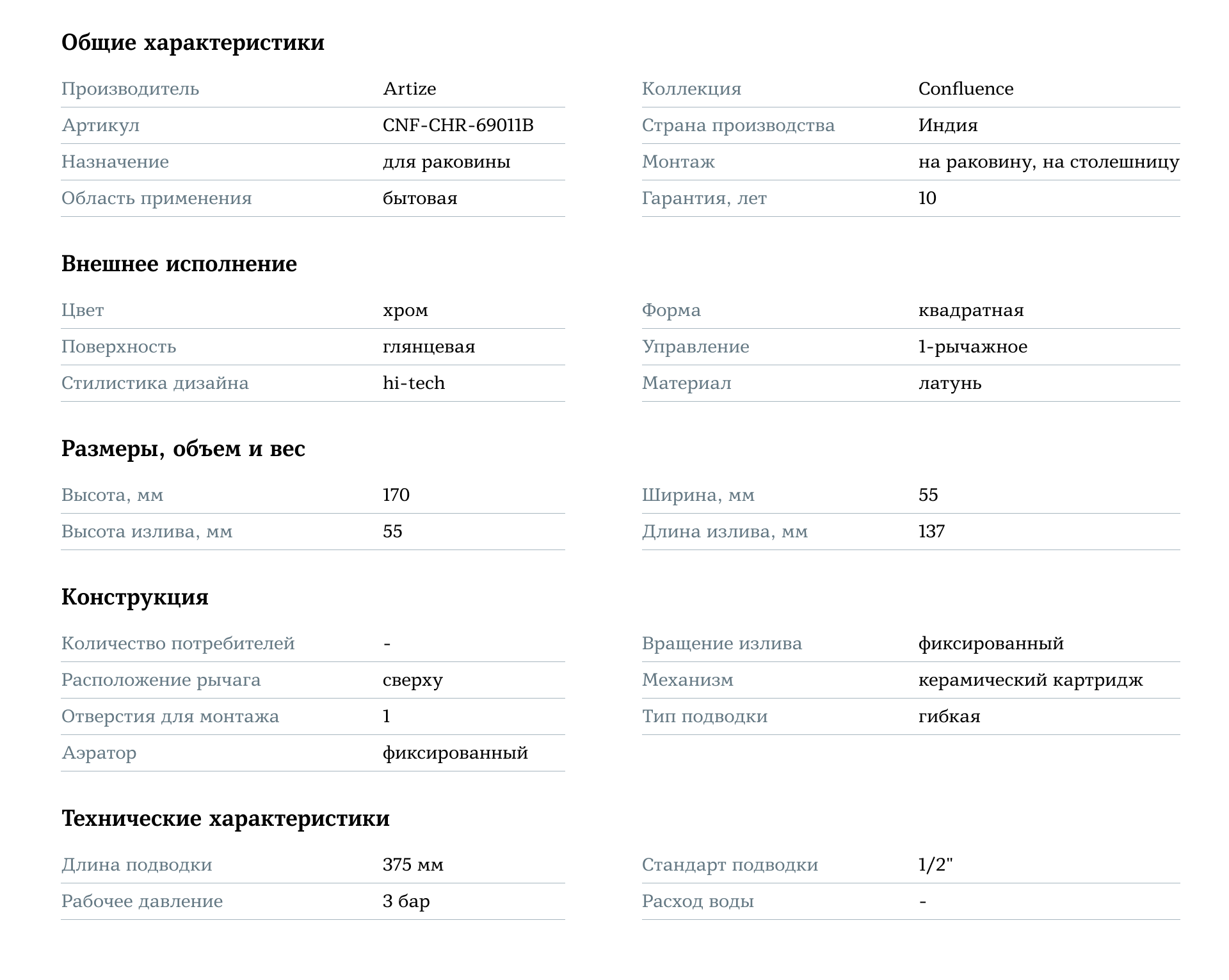 Artize Confluence CNF-CHR-69011B Хром – идеальное сочетание инновационных технологий, эстетики и удобства, которое сделает вашу ванную комнату не только функциональной, но и стильной. Выбирайте качество, надежность и современный дизайн для создания комфортного и запоминающегося интерьера!
