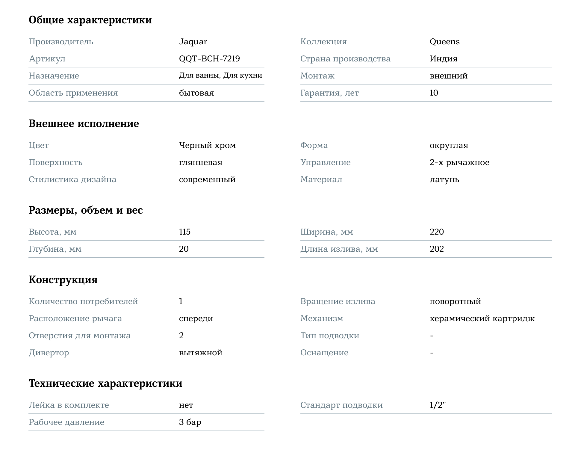 Смеситель для ванны Jaquar Queens QQT-BCH-7219 — это сочетание элегантного стиля и функциональности, которое добавит вашей ванной комнате утончённость и комфорт, делая её более стильной и удобной для ежедневного использования.