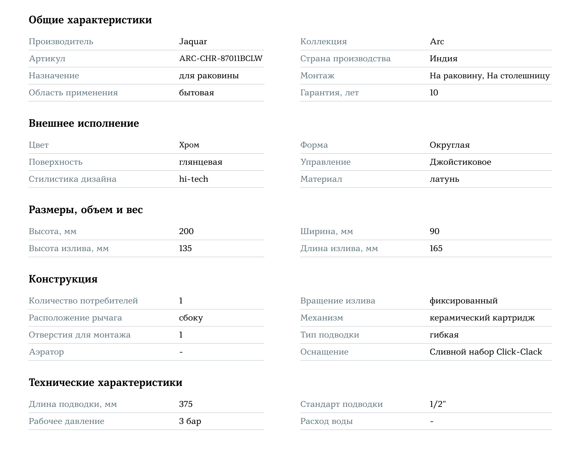 Смеситель Jaquar Arc ARC-CHR-87011BCLW добавит стиль и функциональность в вашу ванную комнату, обеспечивая удобство и долговечность.