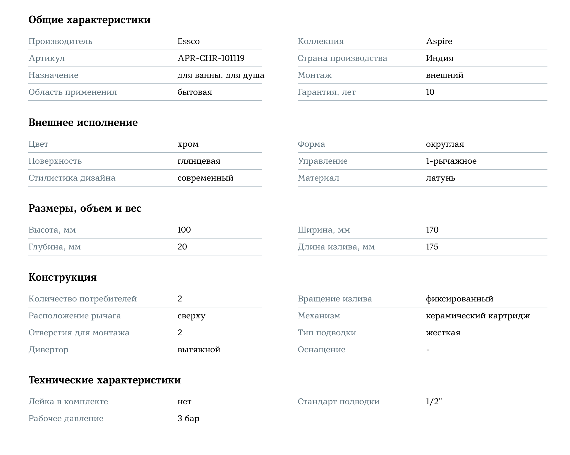 Приобретите однорычажный смеситель для ванны и душа Essco Aspire APR-CHR-101119 уже сегодня и добавьте стиль, удобство и функциональность в вашу ванную комнату!