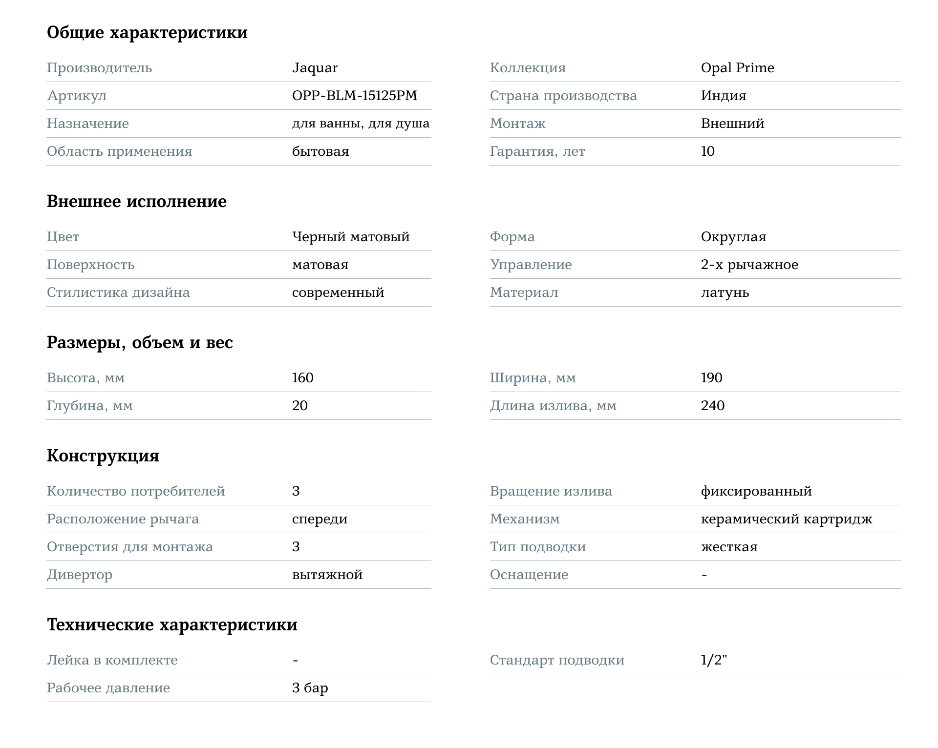 Смеситель для ванны и душа Jaquar Opal Prime OPP-BLM-15125PM — это сочетание высокого качества, функциональности и современного стиля, которое сделает вашу ванную комнату удобной и элегантной для ежедневного использования.