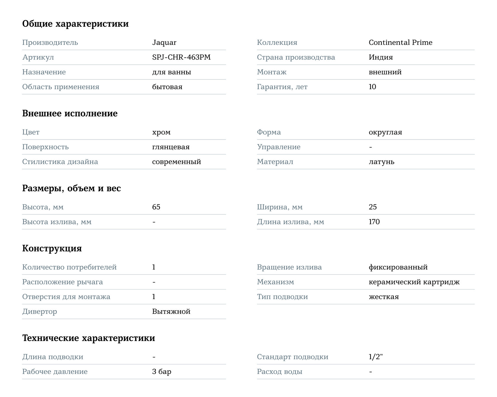 Jaquar Continental Prime SPJ-CHR-463PM Хром