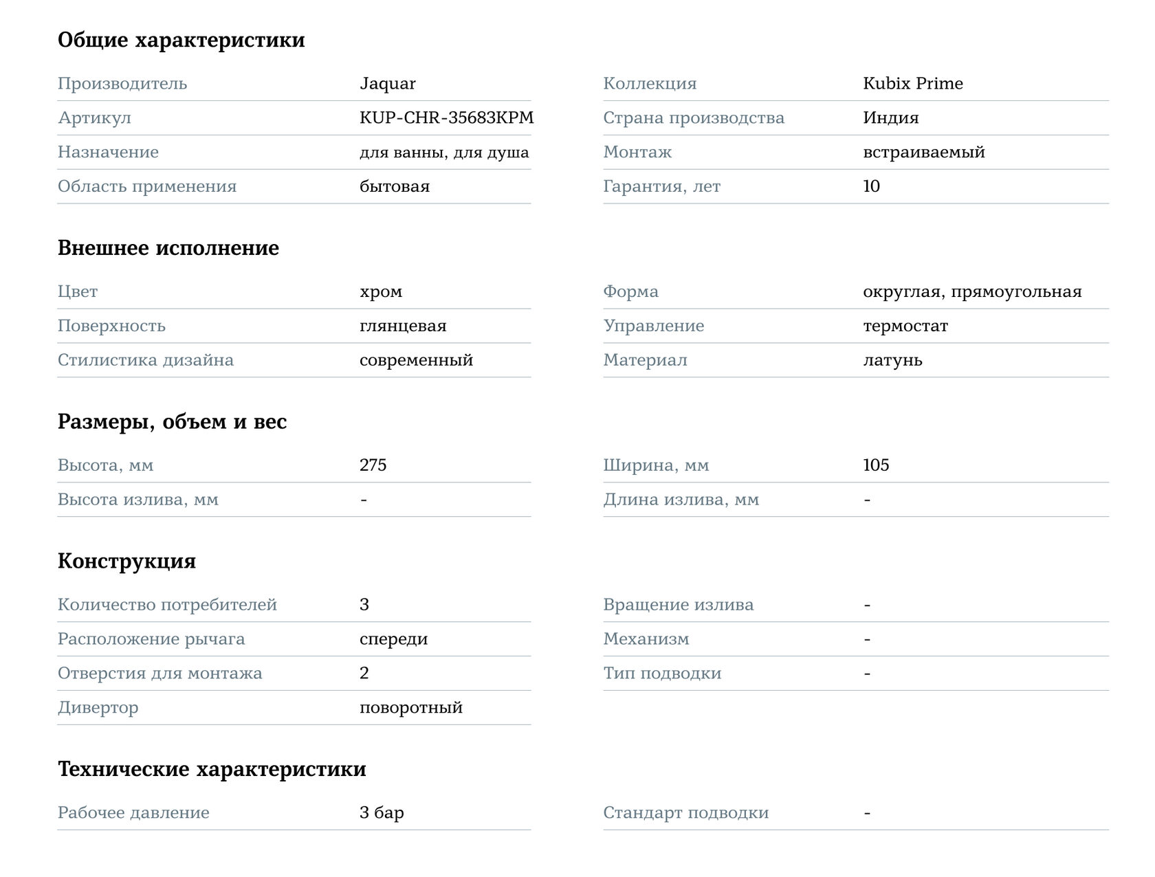 Jaquar Kubix Prime KUP-CHR-35683KPM Хром