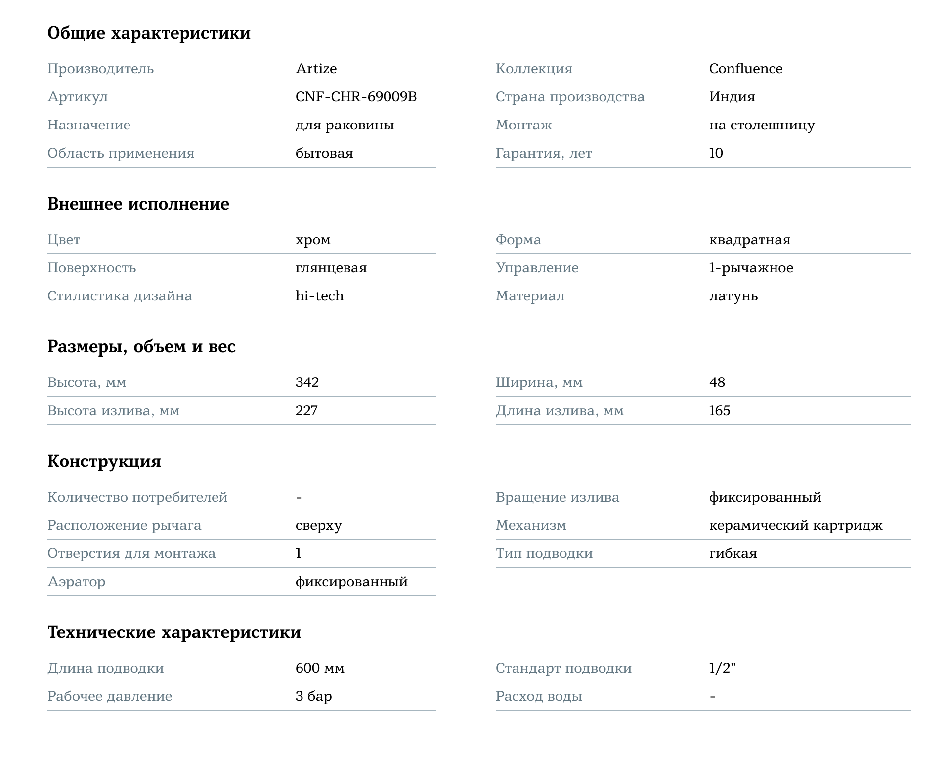 Artize Confluence CNF-CHR-69009B Хром – смеситель премиум-класса, разработанный для тех, кто ценит сочетание инновационных технологий и изысканного дизайна. Изделие отличается продуманной конструкцией, позволяющей обеспечить стабильное управление подачей воды и лёгкость эксплуатации.