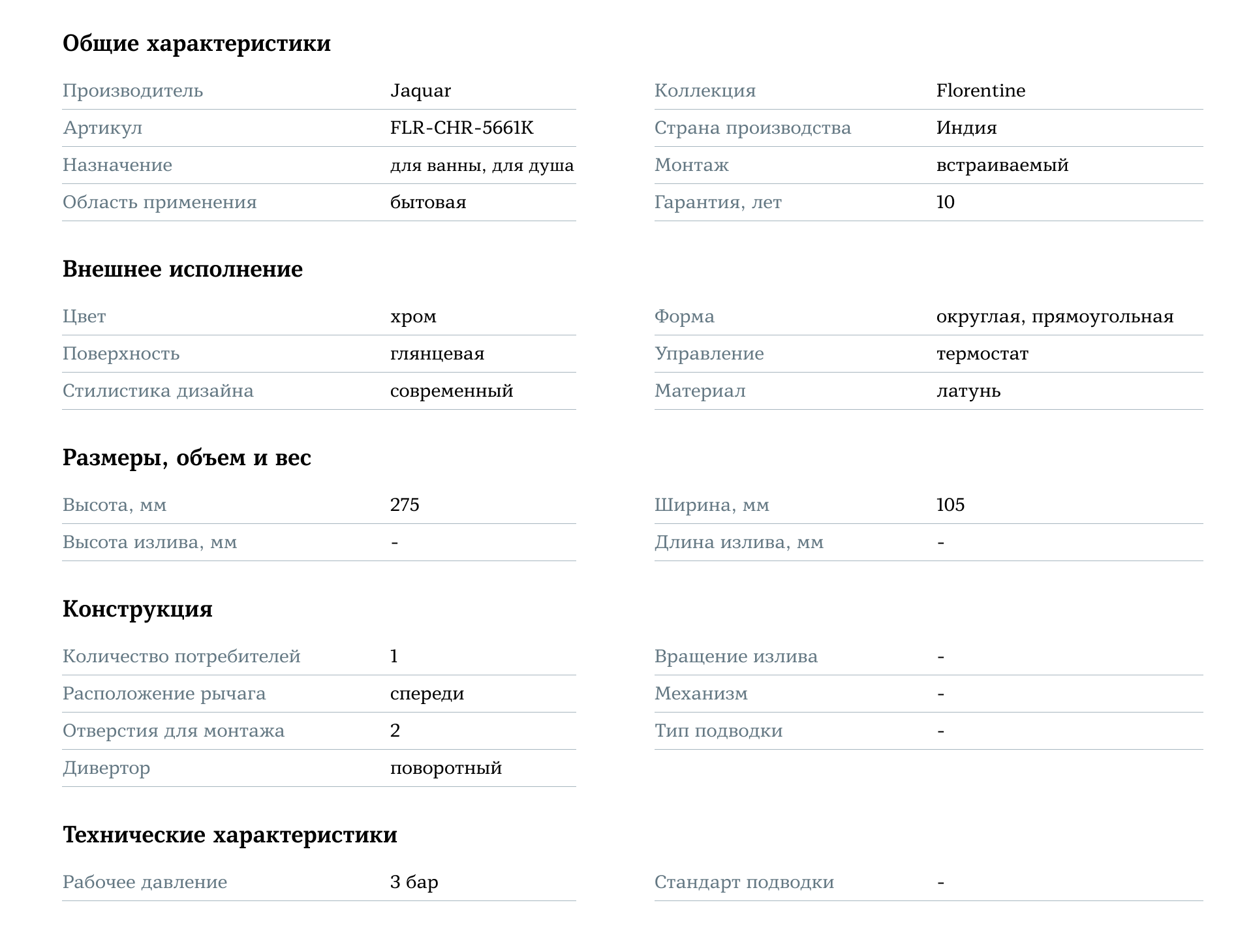 Смеситель для ванны встраиваемый Jaquar Florentine FLR-CHR-5661K — это идеальный выбор для тех, кто ценит сочетание стиля, комфорта и качества.