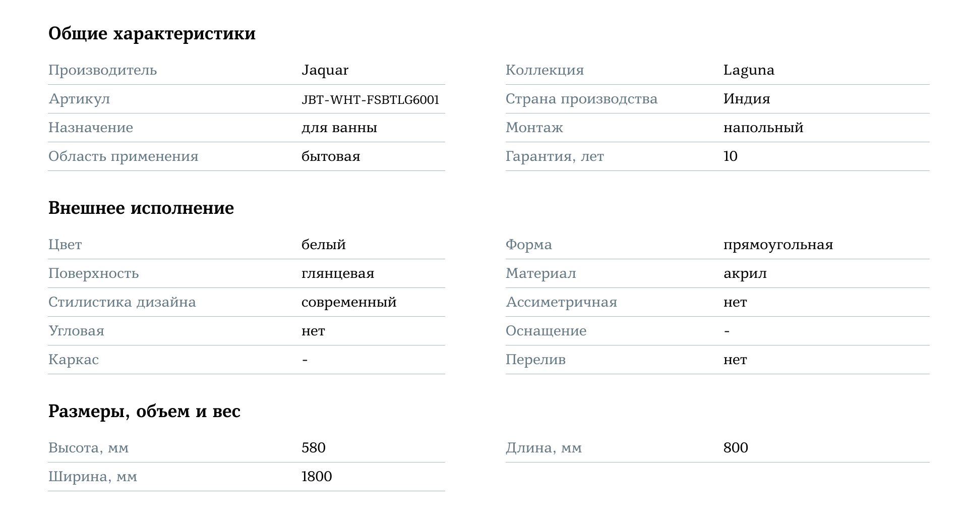 Размеры ванны — 1800x800x440/580 мм — позволяют комфортно разместиться для полноценного отдыха. Встроенная система перелива и слив с поп-ап механизмом делает использование ванны удобным и безопасным. Отдельностоящая установка придаёт ванной комнате роскошный и современный вид, что позволяет легко интегрировать её в любой интерьер.