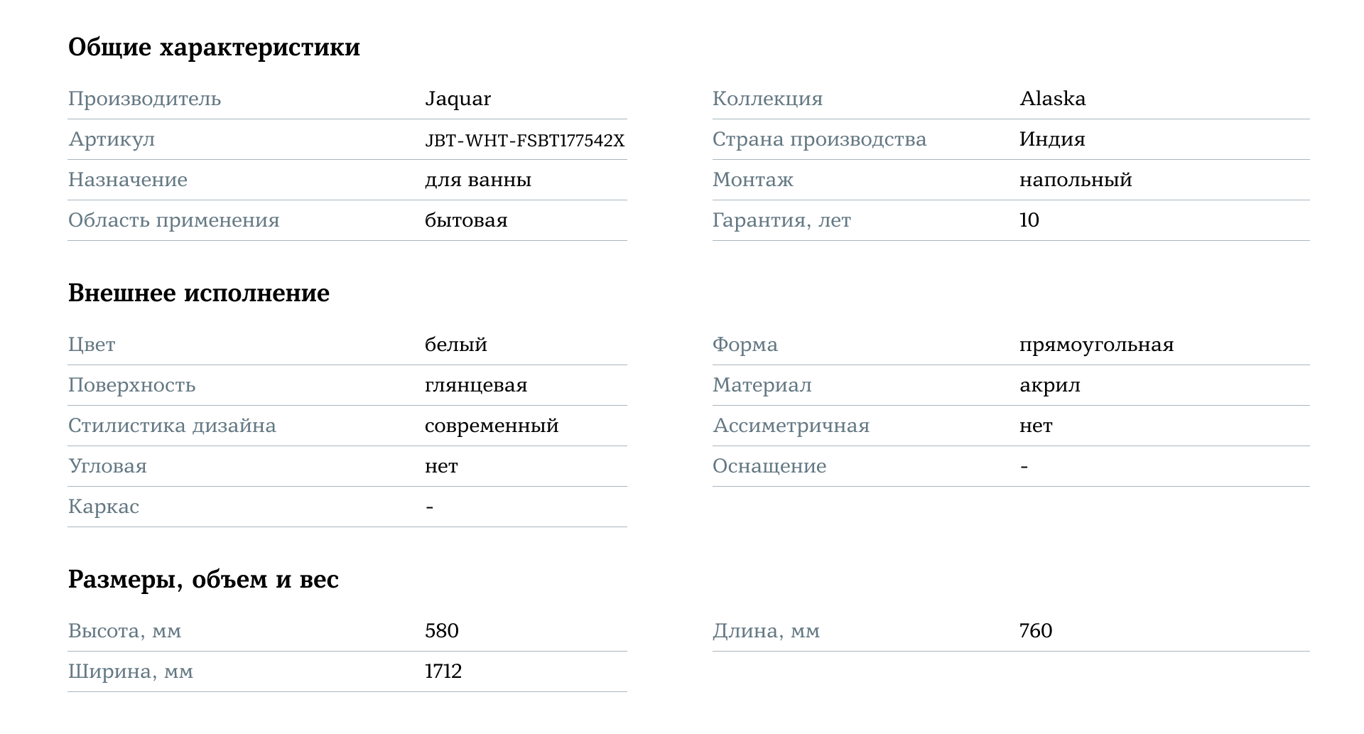 Размеры ванны — 1712x760x440/580 мм — обеспечивают просторное и удобное пространство для водных процедур. Ванна оснащена системой перелива и сливом, что делает её использование комфортным и безопасным. Белый цвет акрила подчёркивает её современность и универсальность, позволяя интегрировать ванну в любой интерьер.