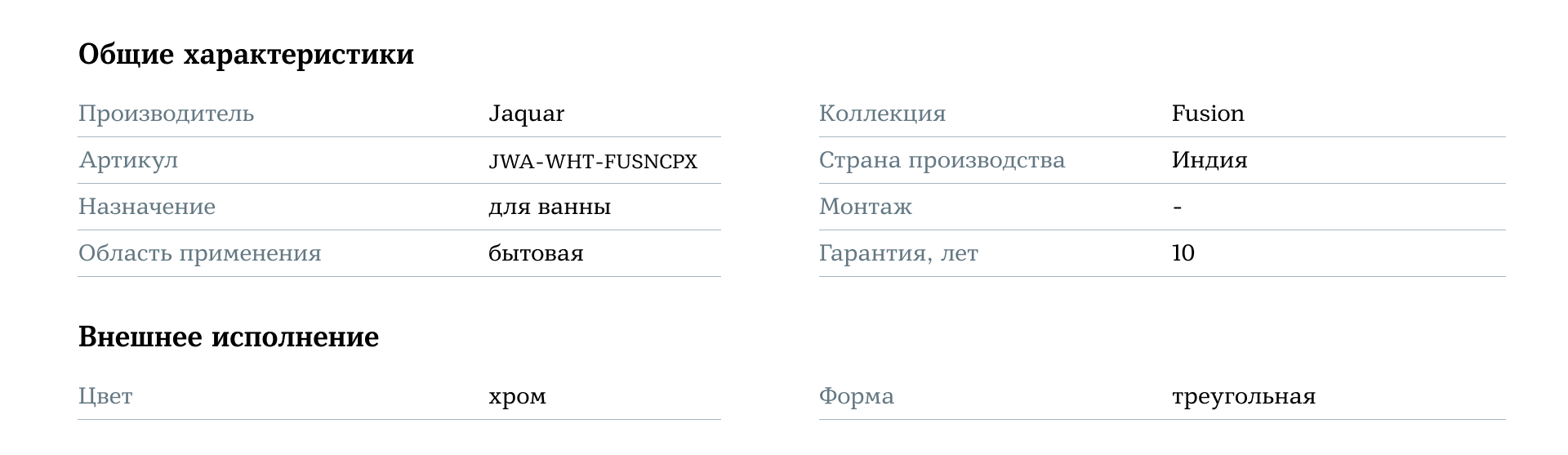 Совместимость: встраиваемая ванна Jaquar Fusion JBT-WHT-FUSN140FX